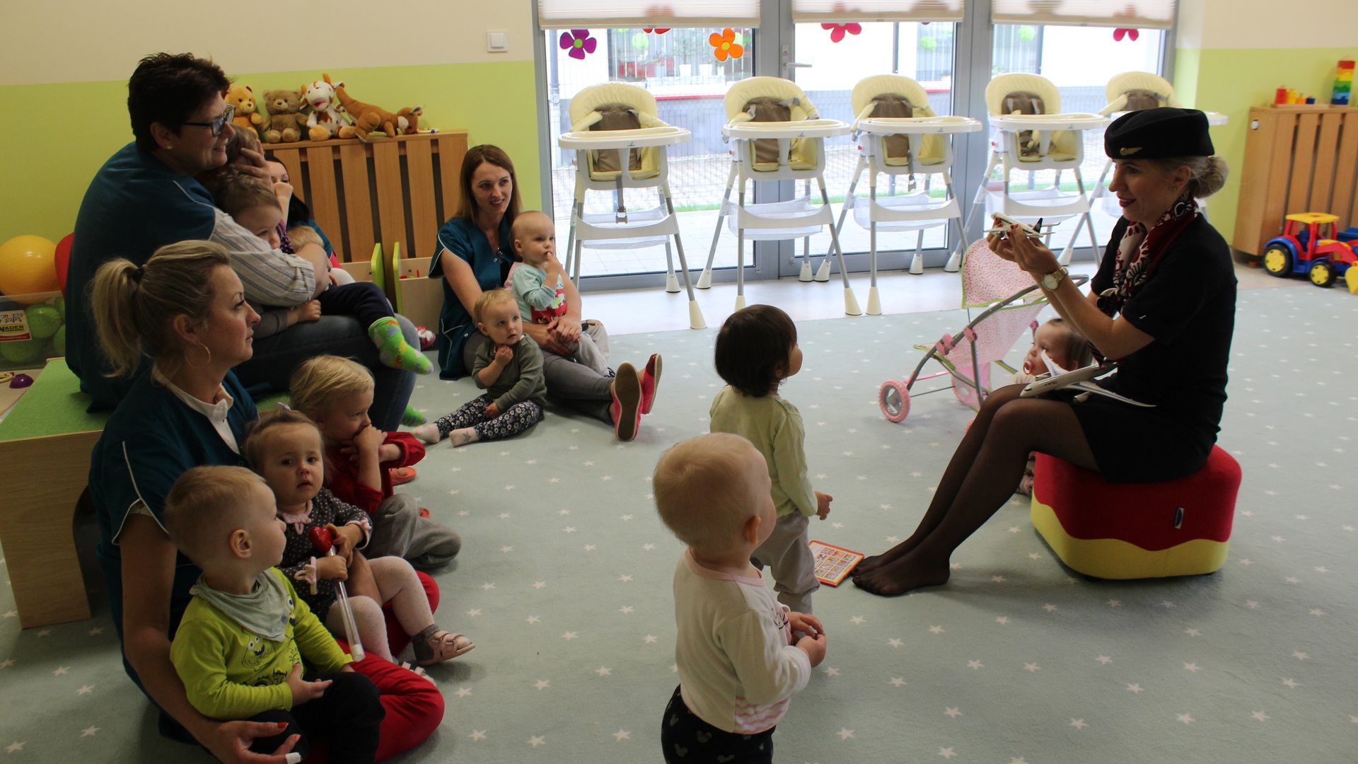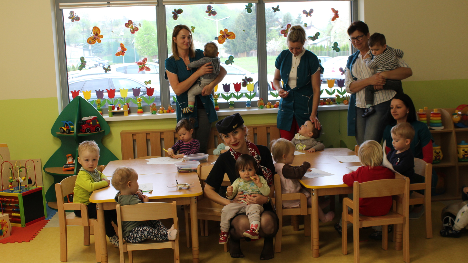 Odwiedziła nas również ciocia jednego z naszych maluchów, która na co dzień pracuje jako stewardessa w liniach lotniczych LOT. Było ciekawie i wesoło, pokazywaliśmy samoloty oraz wykonaliśmy pracę plastyczną. Dzieci chętnie pozowały do zdjęć i kto wie czy niebawem, wybierając się z rodzicami na wakacje, nie spotkają w samolocie właśnie naszej pani stewardessy :)