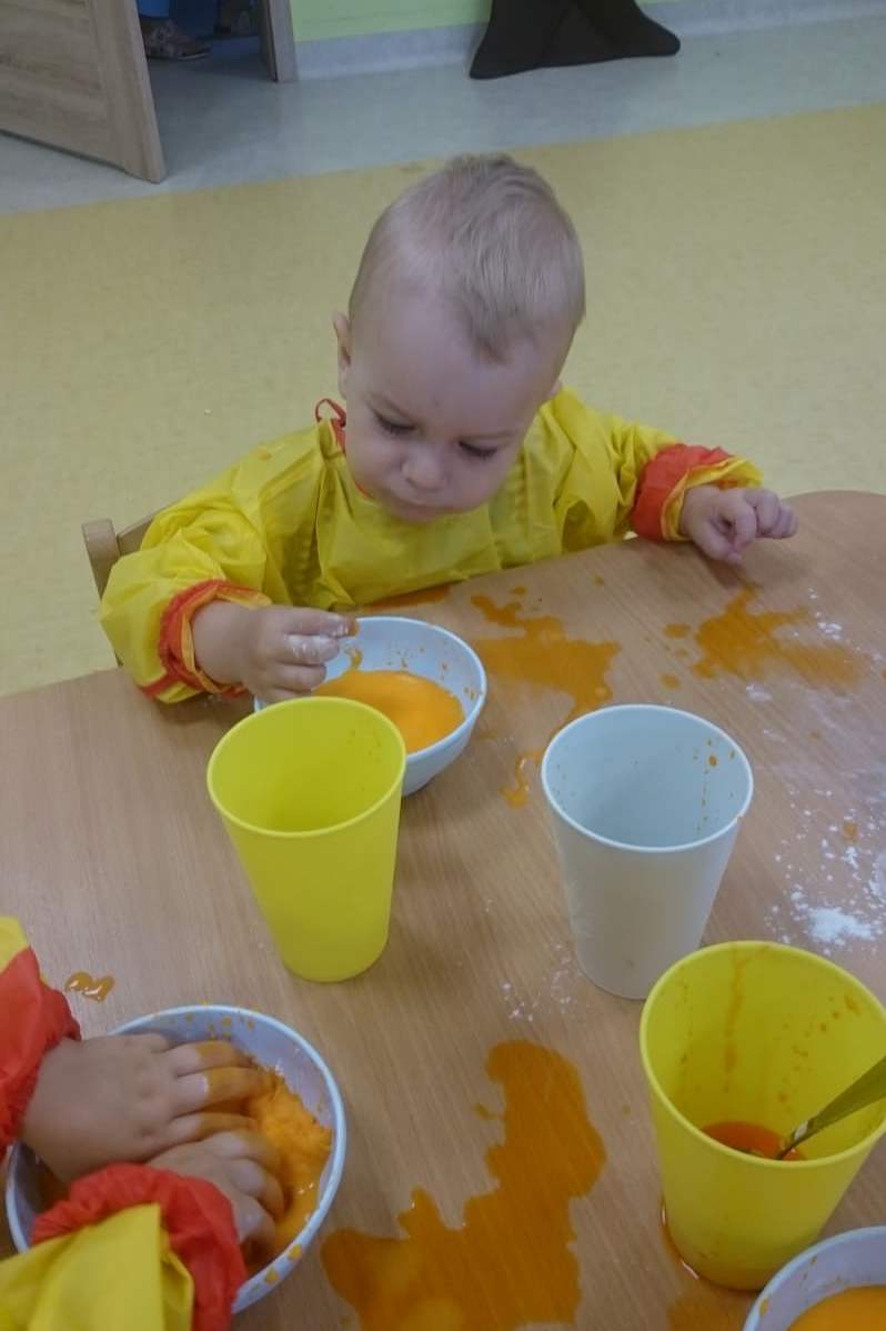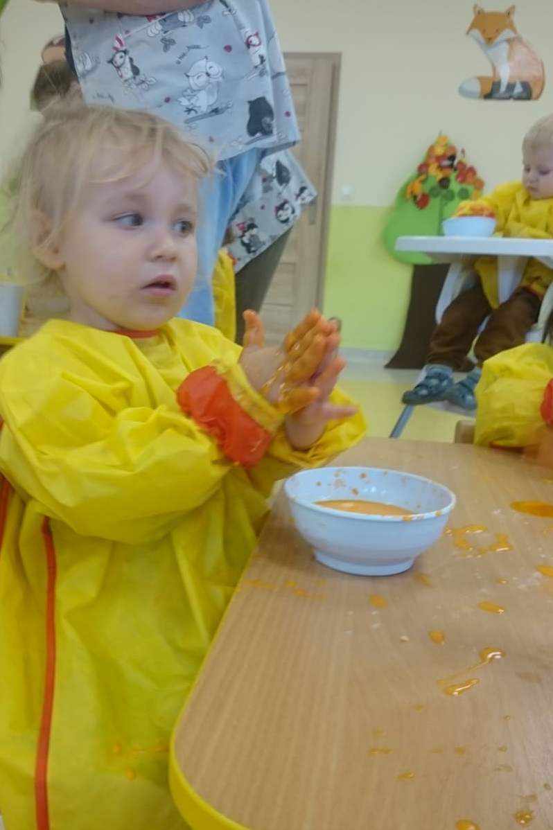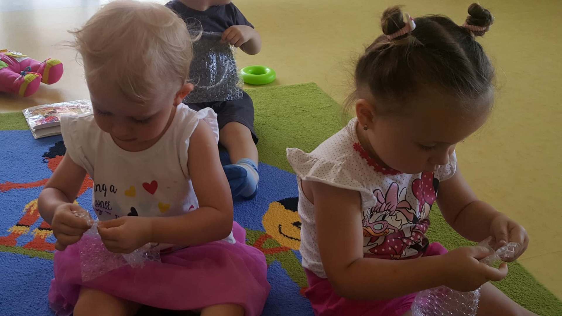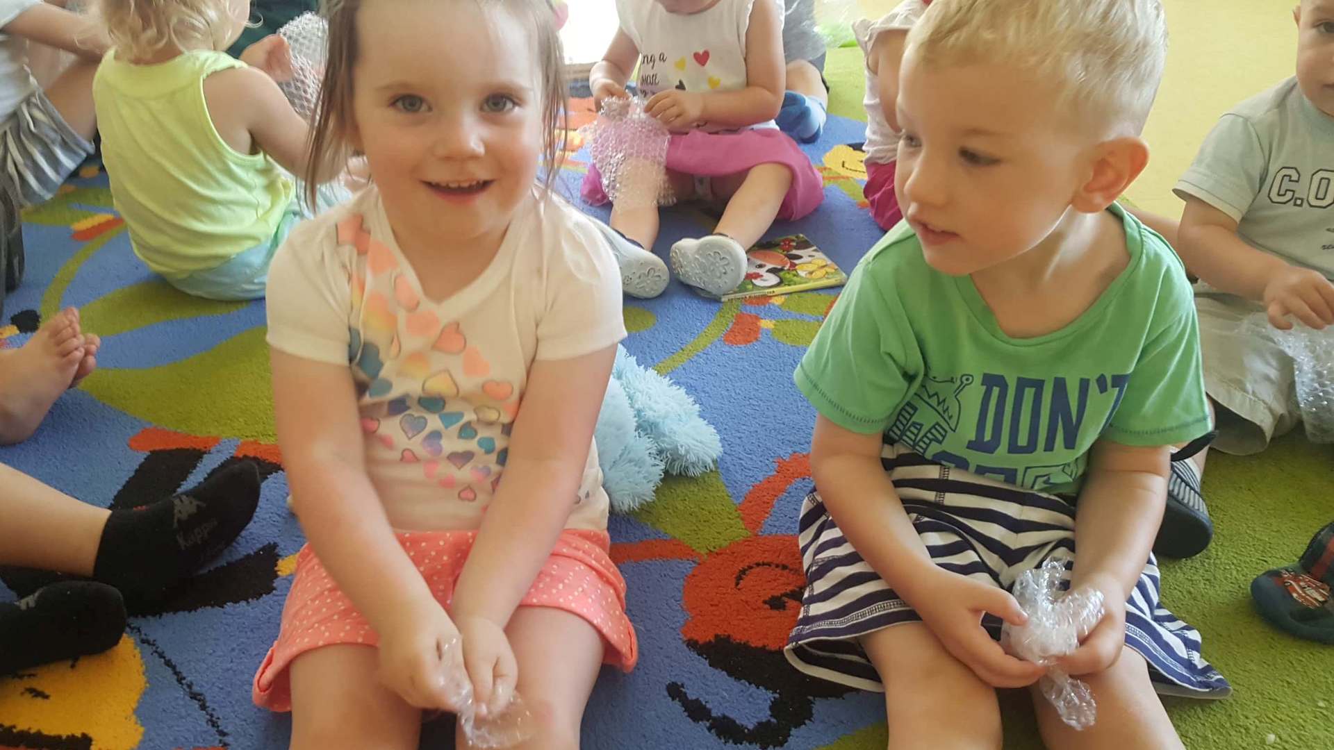 Wakacje już trwają a my wcale nie odpoczywamy. Na zajęciach sensorycznych bawiliśmy się cieczą nienewtonowską, która pod wpływem nacisku zmienia swoje właściwości. Do jej przygotowania wystarczy skrobia ziemniaczana i woda. A jeśli chcemy uzyskać kolor dodajemy barwnik. Trzeba przyznać, że oprócz świetnej zabawy to także miłe odprężenie dla dłoni. Z kolei na kolejnych zajęciach królowała folia bąbelkowa; można było po niej biegać, skakać gołymi stópkami, a potem ściskać w rączkach – jak wiadomo dla naszych żłobkowiczów to były niesamowite doznania. Dzieciaczki były zadowolone, co widać na załączonych zdjęciach.