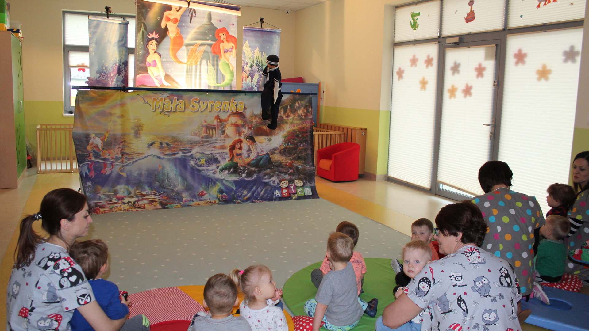 15 maja 2019 r. gościliśmy w żłobku Teatr "Aster" z Grybowa z przedstawieniem kukiełkowym "Mała Syrenka", nawiązujący do znanej baśni Hansa Chrystiana Andersena. Piękna i kolorowa scenografia oraz wesoły podkład muzyczny, przeniosły dzieci w czarujący świat baśni.