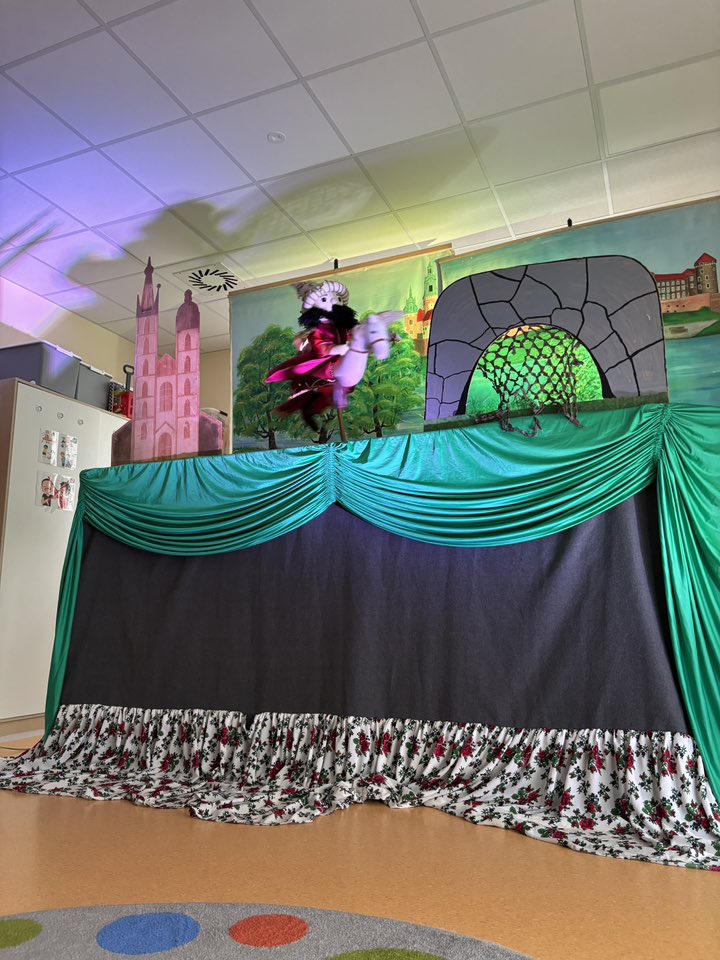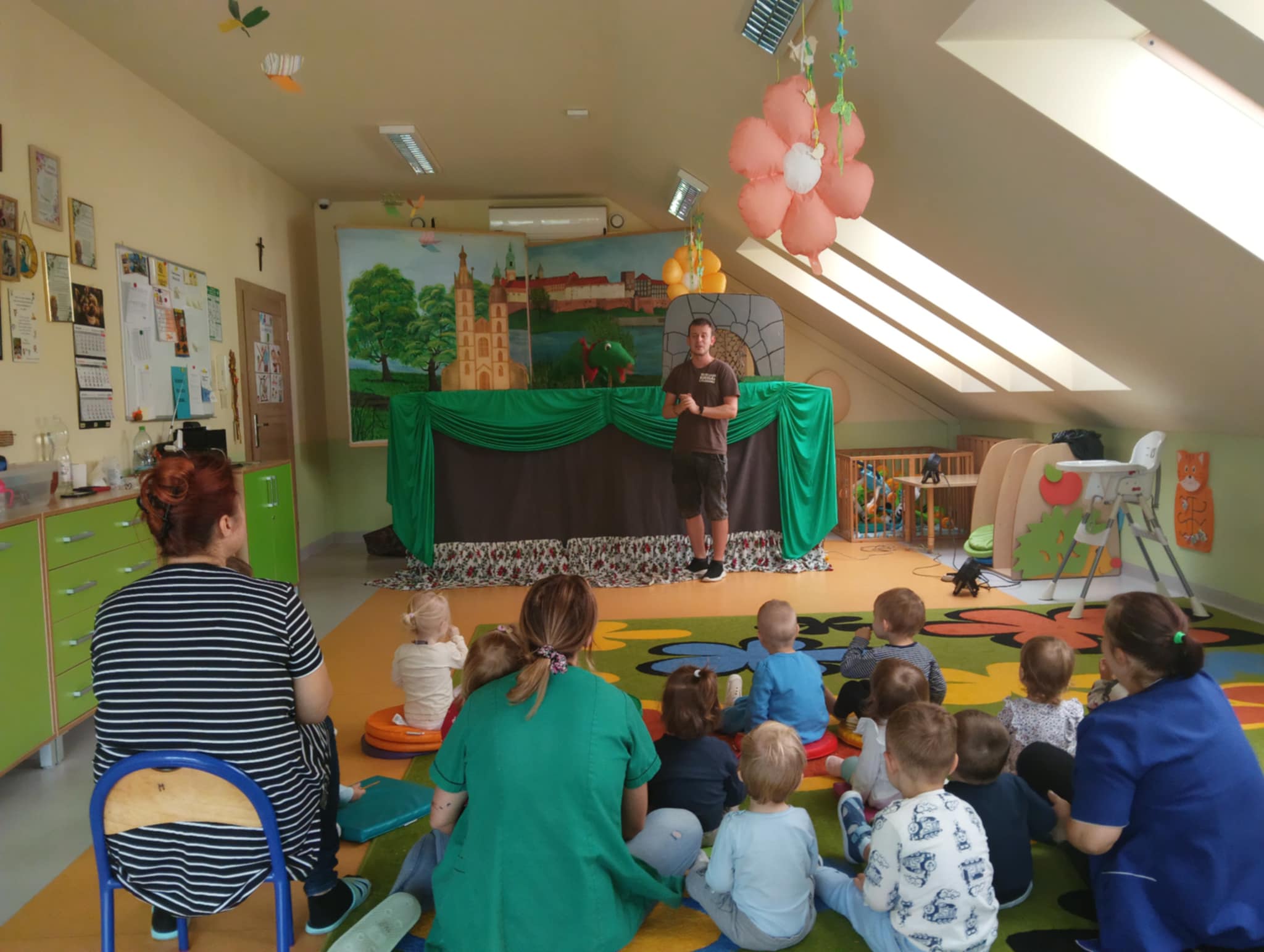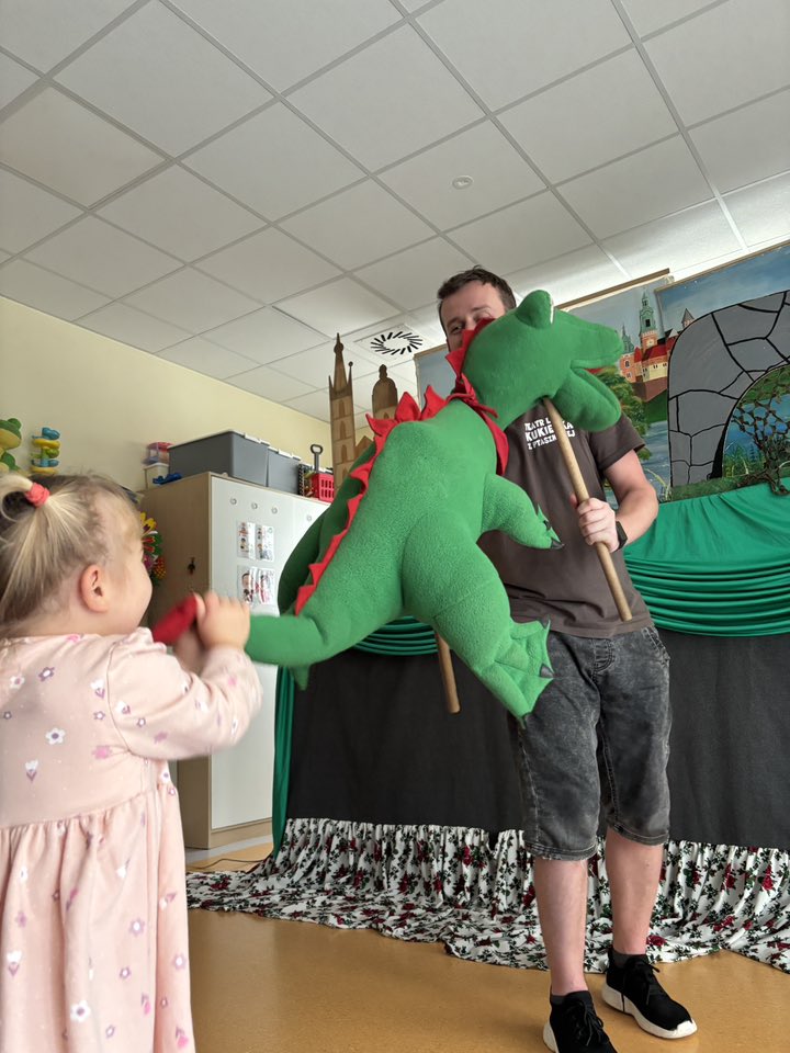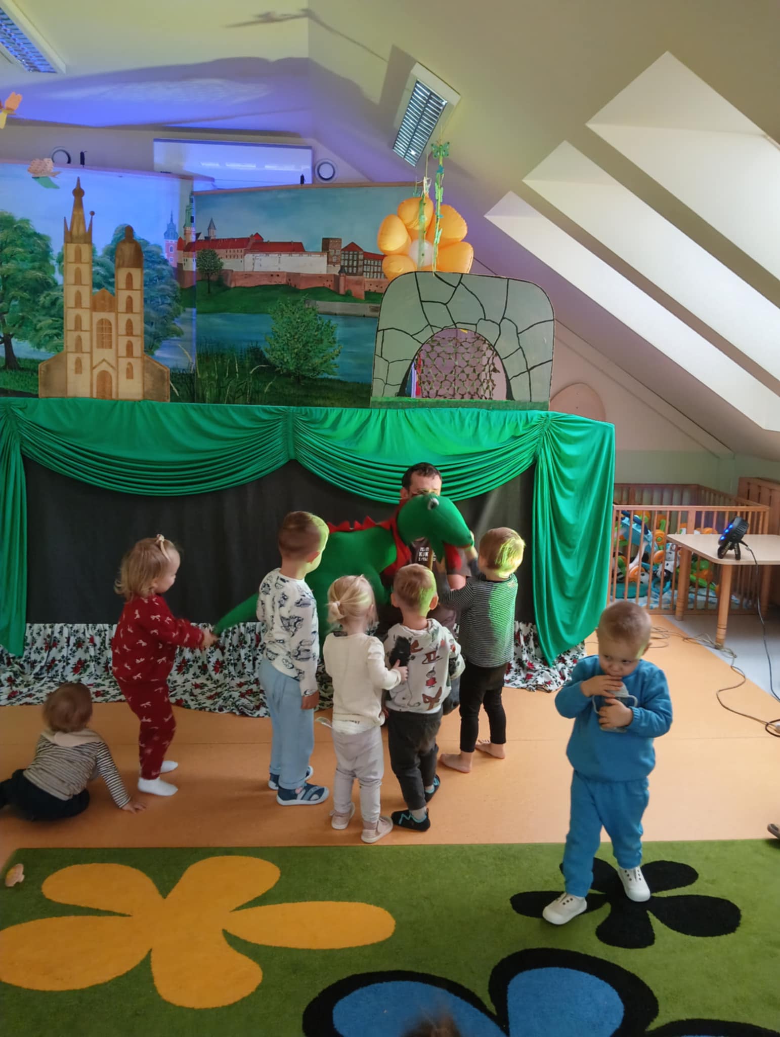 Dziś w naszym żłobku odbyło się wyjątkowe spotkanie ze światem teatru! Odwiedził nas Teatrzyk lalek „Kukiełka” z Ptaszkowej, który zaprezentował dzieciom barwne i pełne humoru przedstawienie o Smoku Wawelskim.