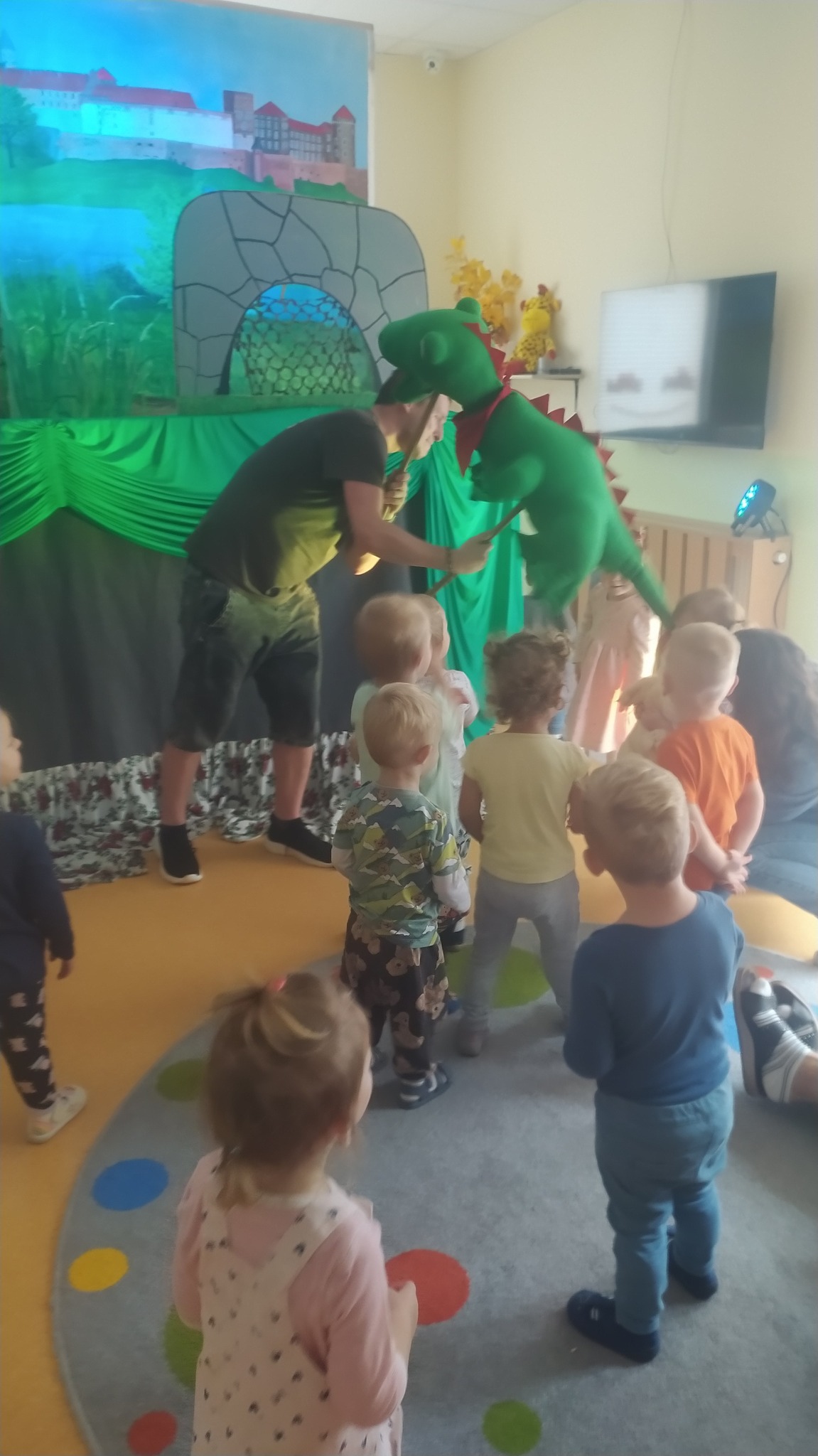 Maluchy z zapartym tchem śledziły przygody dzielnego szewczyka i groźnego smoka, poznając w ciekawy sposób fragment polskiej legendy. Było dużo śmiechu, muzyki i wspólnej zabawy!