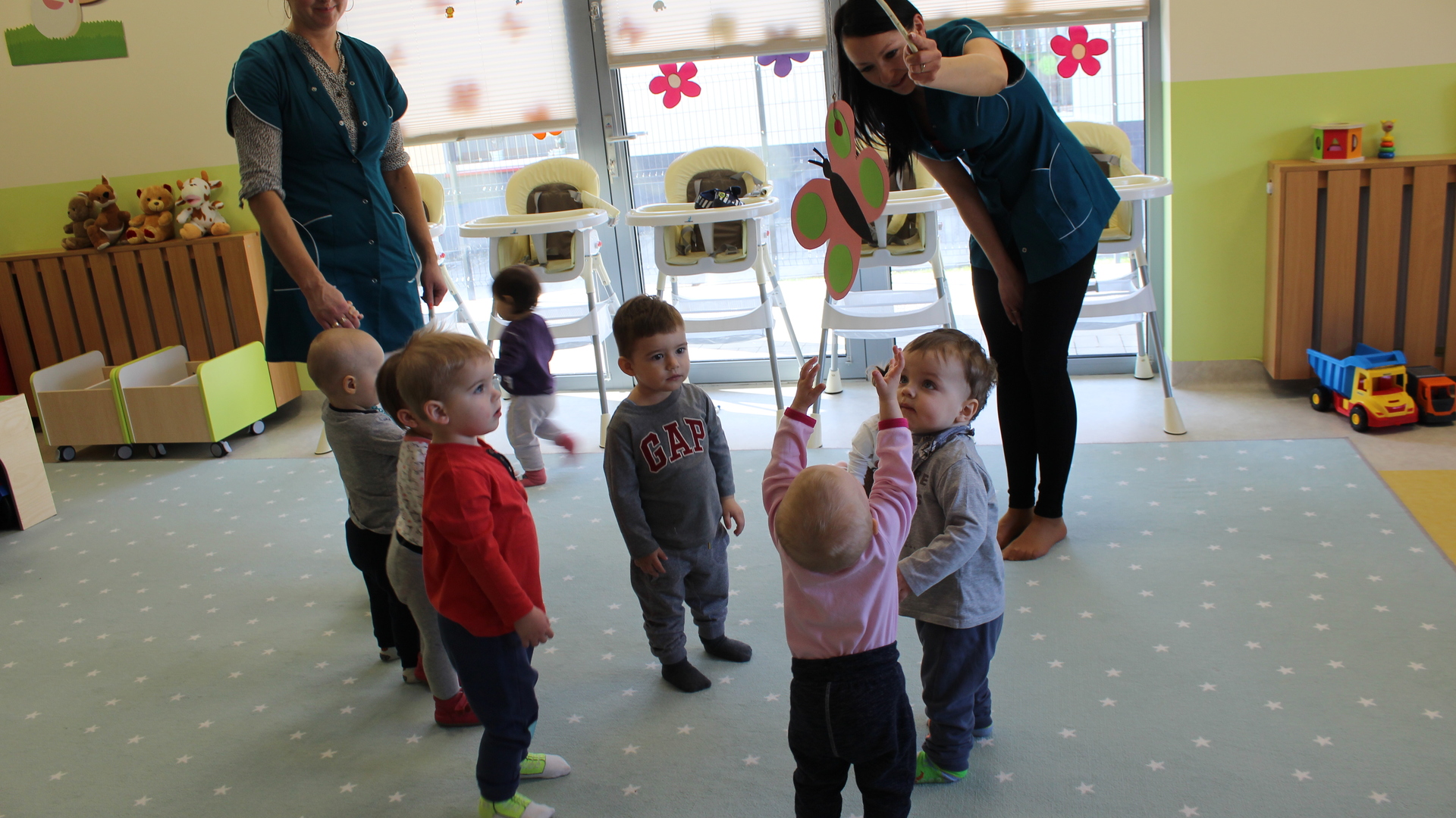 Wraz z pierwszymi promieniami słońca w naszym żłobku zrobiło się jeszcze przytulniej i weselej. Na szybach okiennych zadomowiły się już motyle, kwiatki i żabki. Słoneczko grzeje coraz mocniej co sprzyja spacerom i beztroskim zabawom na przyżłobkowym placu zabaw. Dzięki temu wszystkim udziela się radosny, wiosenny nastrój. Na co dzień nie zapominamy o zabawie, kształtowaniu dobrych nawyków oraz rozwijaniu swoich umiejętności. Tak więc nabieramy sił i cieszymy się z najpiękniejszej pory roku!