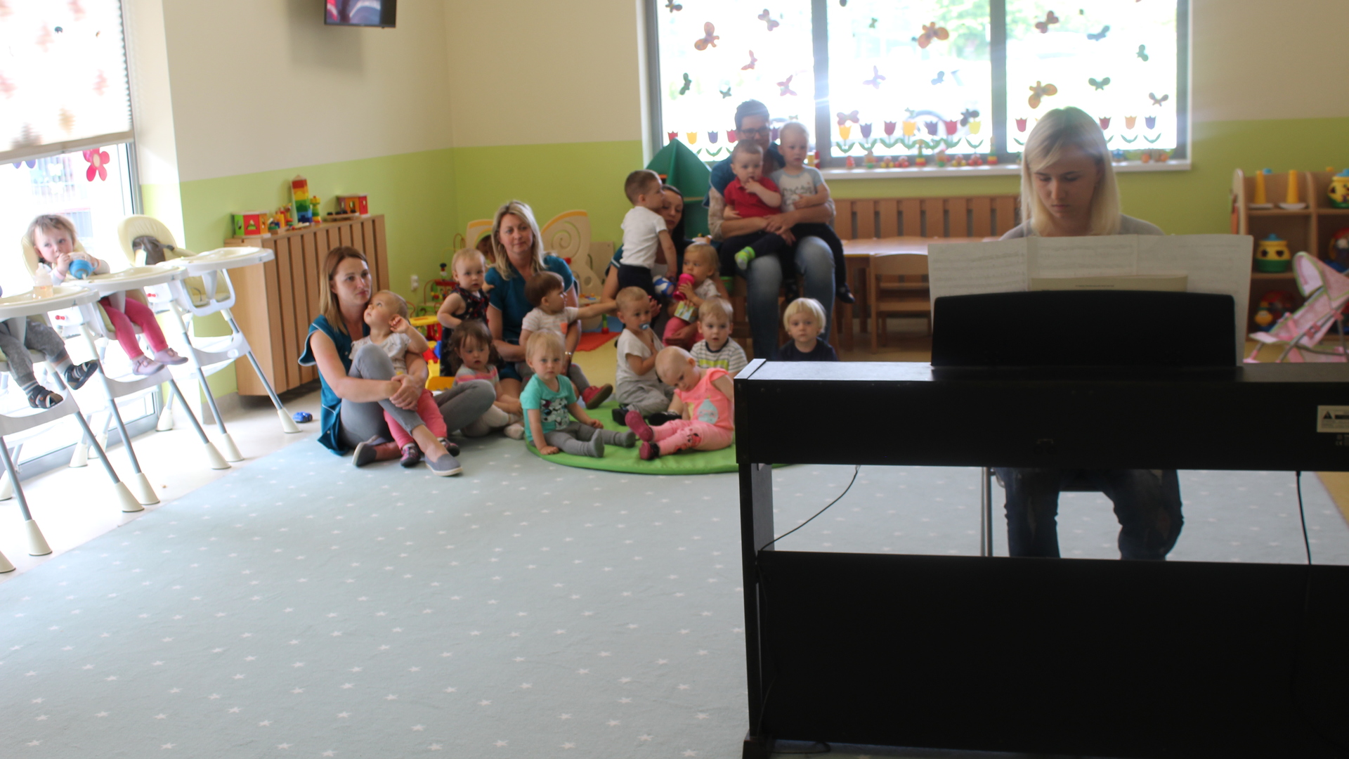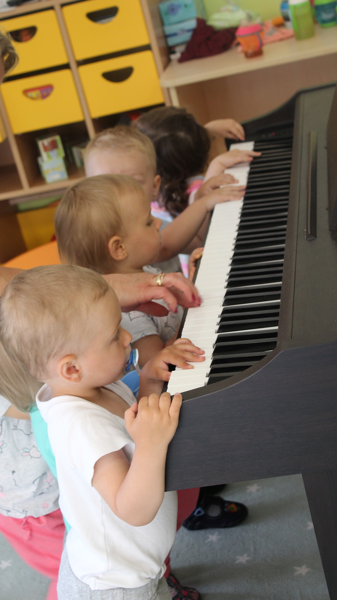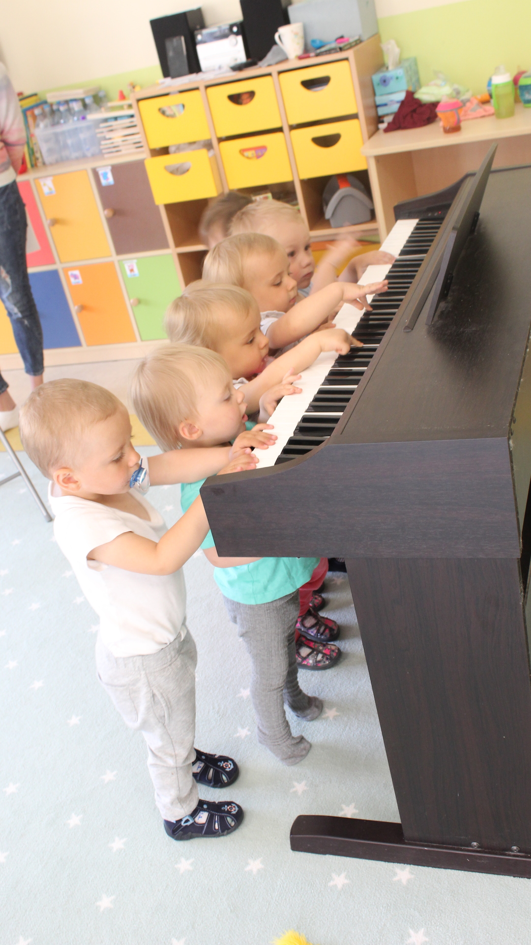 W żłobku śpiewamy, tańczymy, relaksujemy się przy muzyce, a ostatnio nasi żłobkowicze mieli także okazję posłuchać muzyki płynącej z pianina. Korzystając ze sposobności zaprosiliśmy na zajęcia uczennice szkoły muzycznej, która przyjechała do nas i zagrała na tym wspaniałym instrumencie muzycznym. Dzieci z zaciekawieniem i w skupieniu słuchały wydobywających się dźwięków, a potem sami ujawniali swoje talenty.