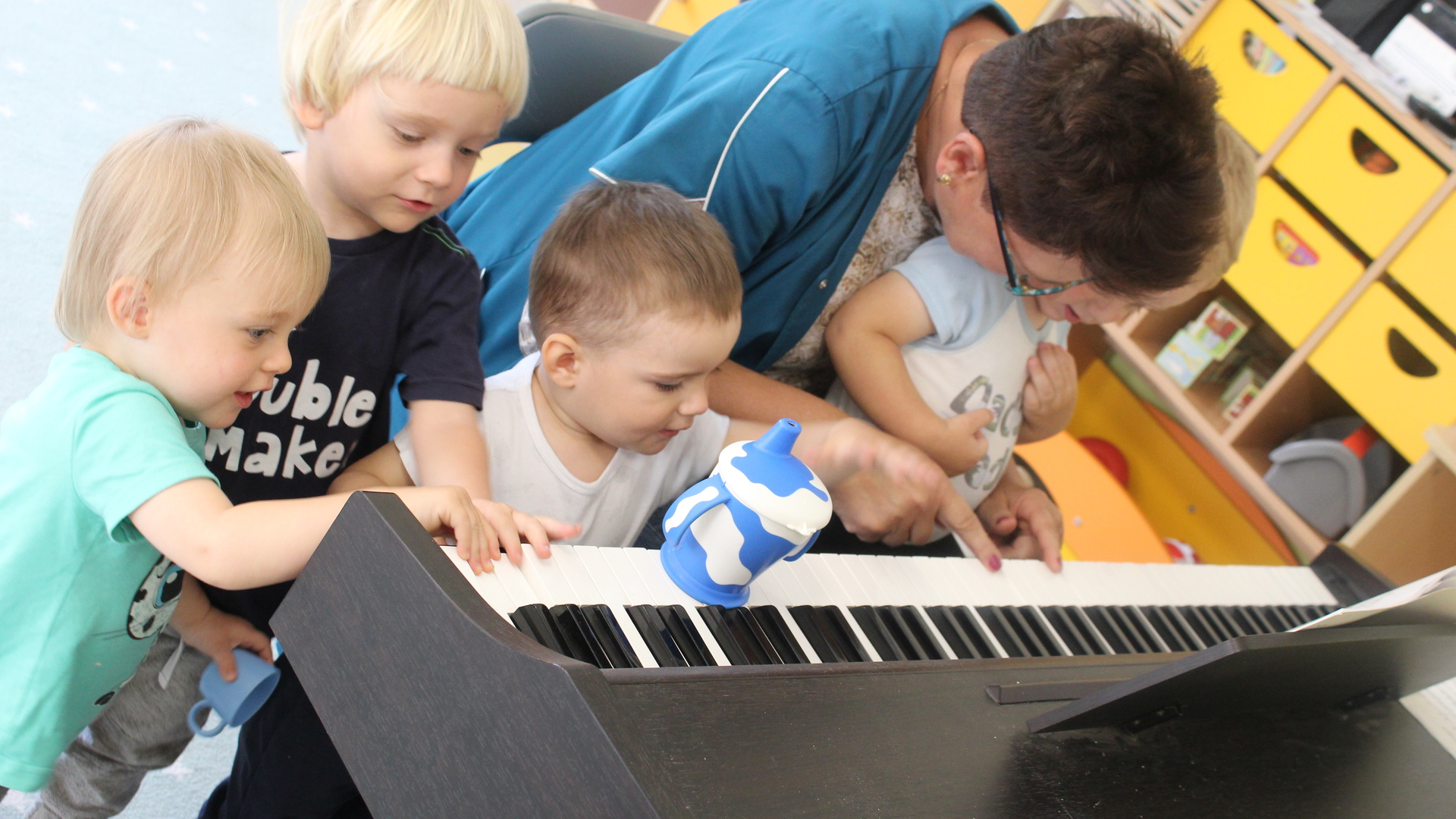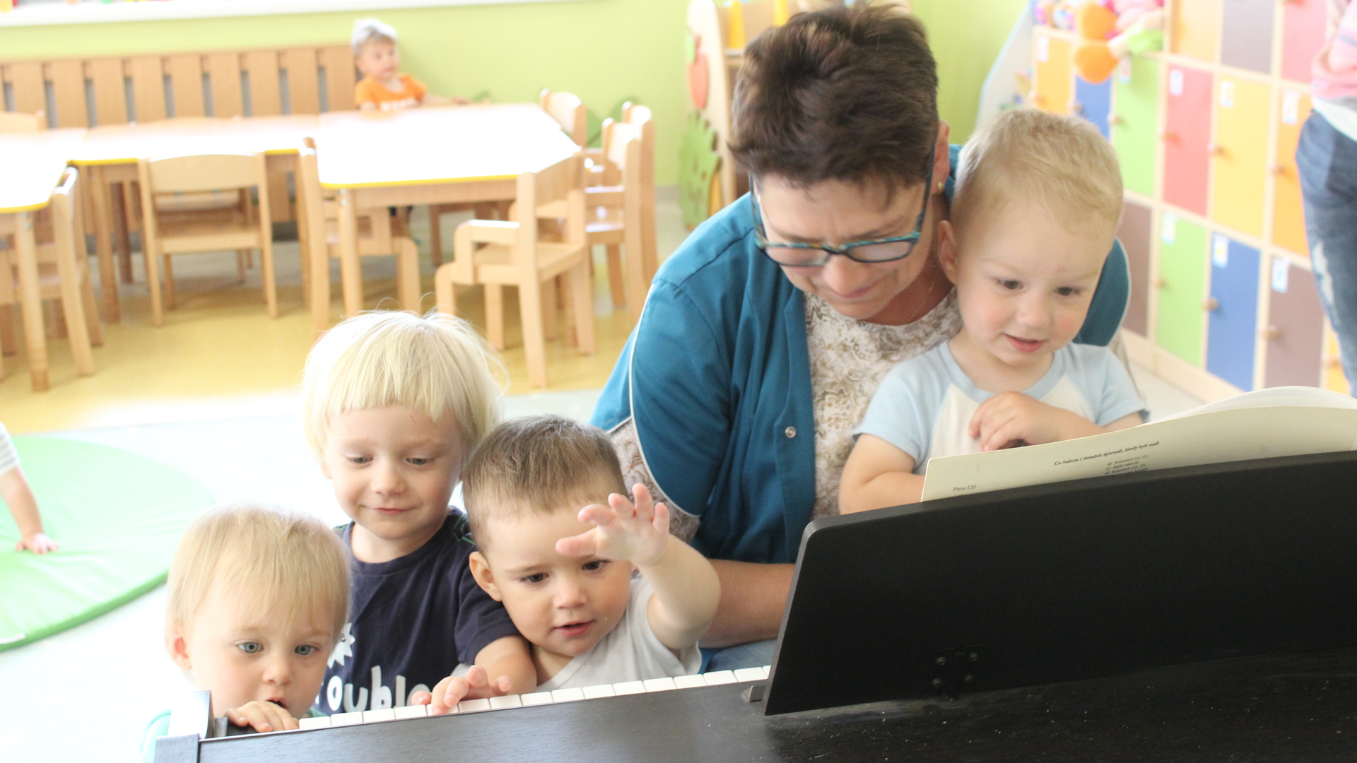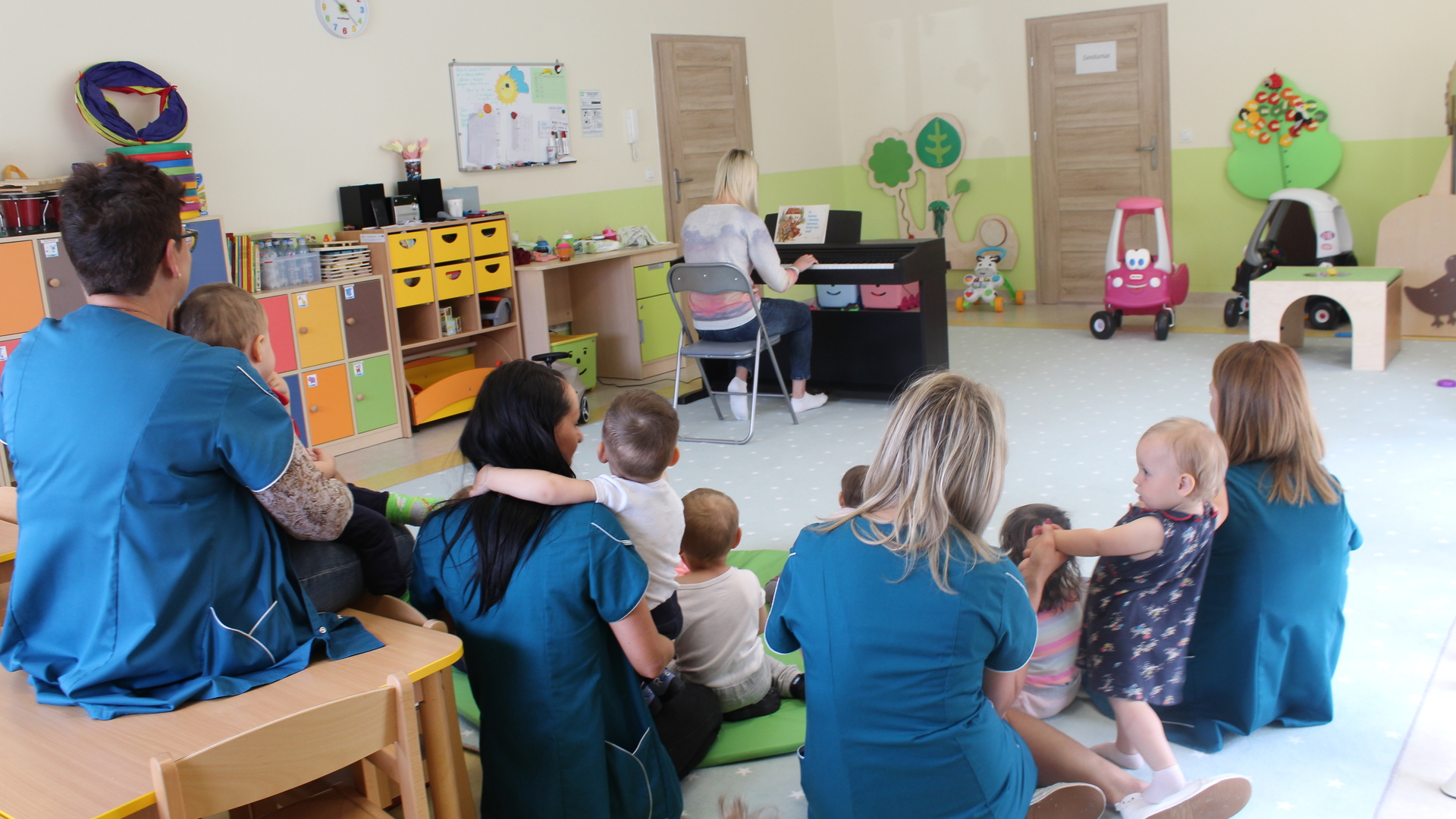 W żłobku śpiewamy, tańczymy, relaksujemy się przy muzyce, a ostatnio nasi żłobkowicze mieli także okazję posłuchać muzyki płynącej z pianina. Korzystając ze sposobności zaprosiliśmy na zajęcia uczennice szkoły muzycznej, która przyjechała do nas i zagrała na tym wspaniałym instrumencie muzycznym. Dzieci z zaciekawieniem i w skupieniu słuchały wydobywających się dźwięków, a potem sami ujawniali swoje talenty.