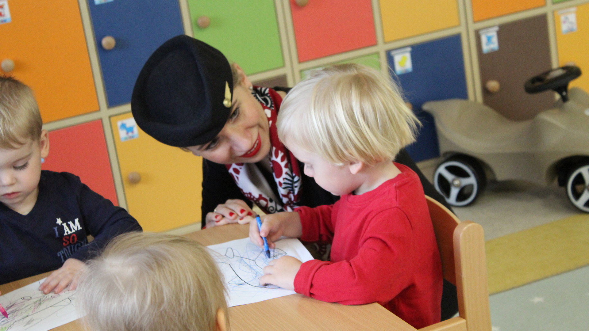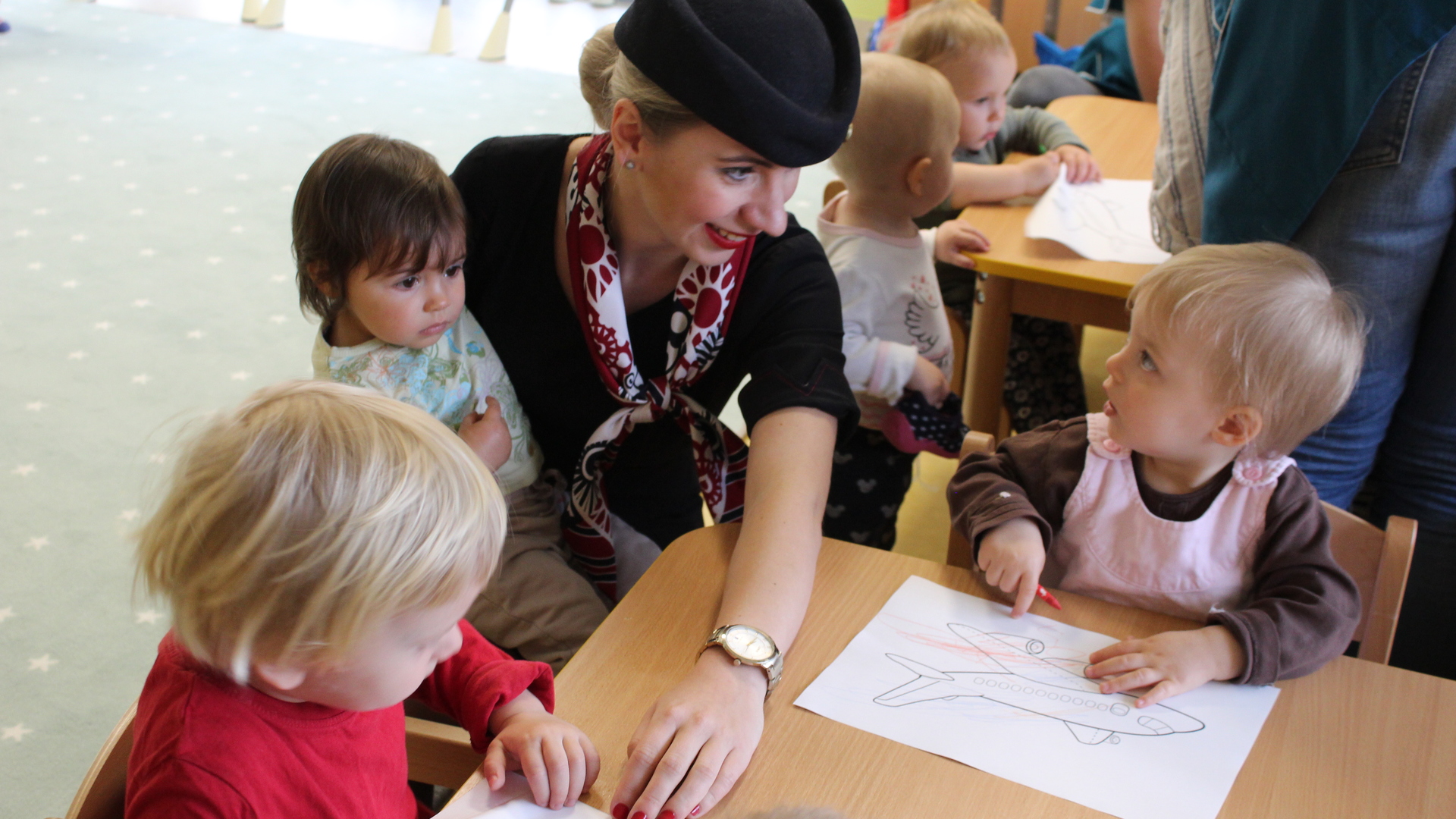 Odwiedziła nas również ciocia jednego z naszych maluchów, która na co dzień pracuje jako stewardessa w liniach lotniczych LOT. Było ciekawie i wesoło, pokazywaliśmy samoloty oraz wykonaliśmy pracę plastyczną. Dzieci chętnie pozowały do zdjęć i kto wie czy niebawem, wybierając się z rodzicami na wakacje, nie spotkają w samolocie właśnie naszej pani stewardessy :)