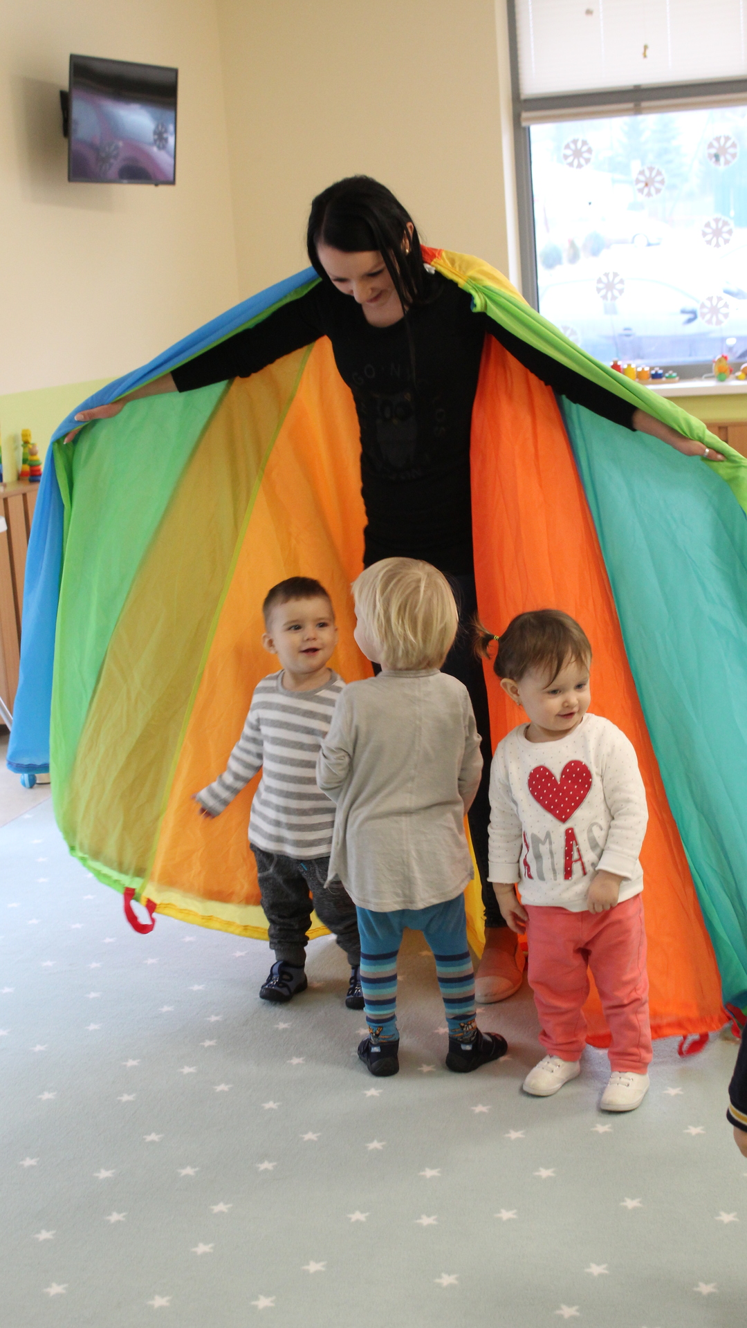 Pod bacznym okiem cioć: Renaty, Moniki, Ani, Pauliny oraz Rity w „Bajkowej Krainie” swoje pierwsze kroki postawili odważni żłobkowicze… Na co dzień staramy się wspierać, rozwijać oraz edukować każde dziecko uwzględniając indywidualne podejście. Chcemy, aby milusińscy efektywnie i twórczo mogli spędzać tutaj czas, dlatego bawimy się, śpiewamy i wykonujemy przeróżne prace plastyczne…