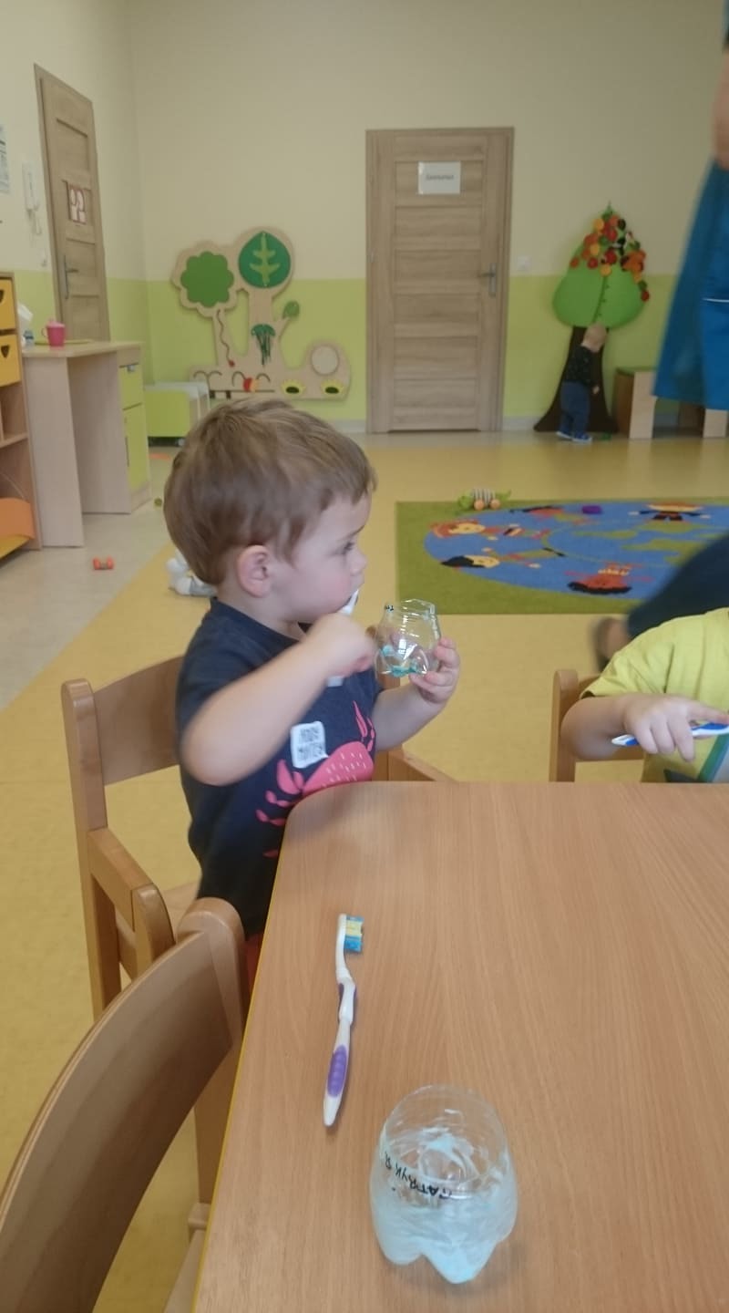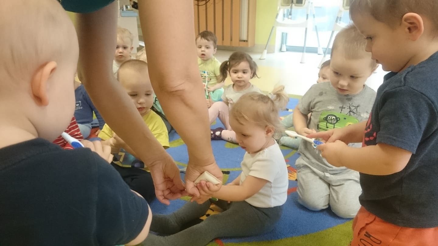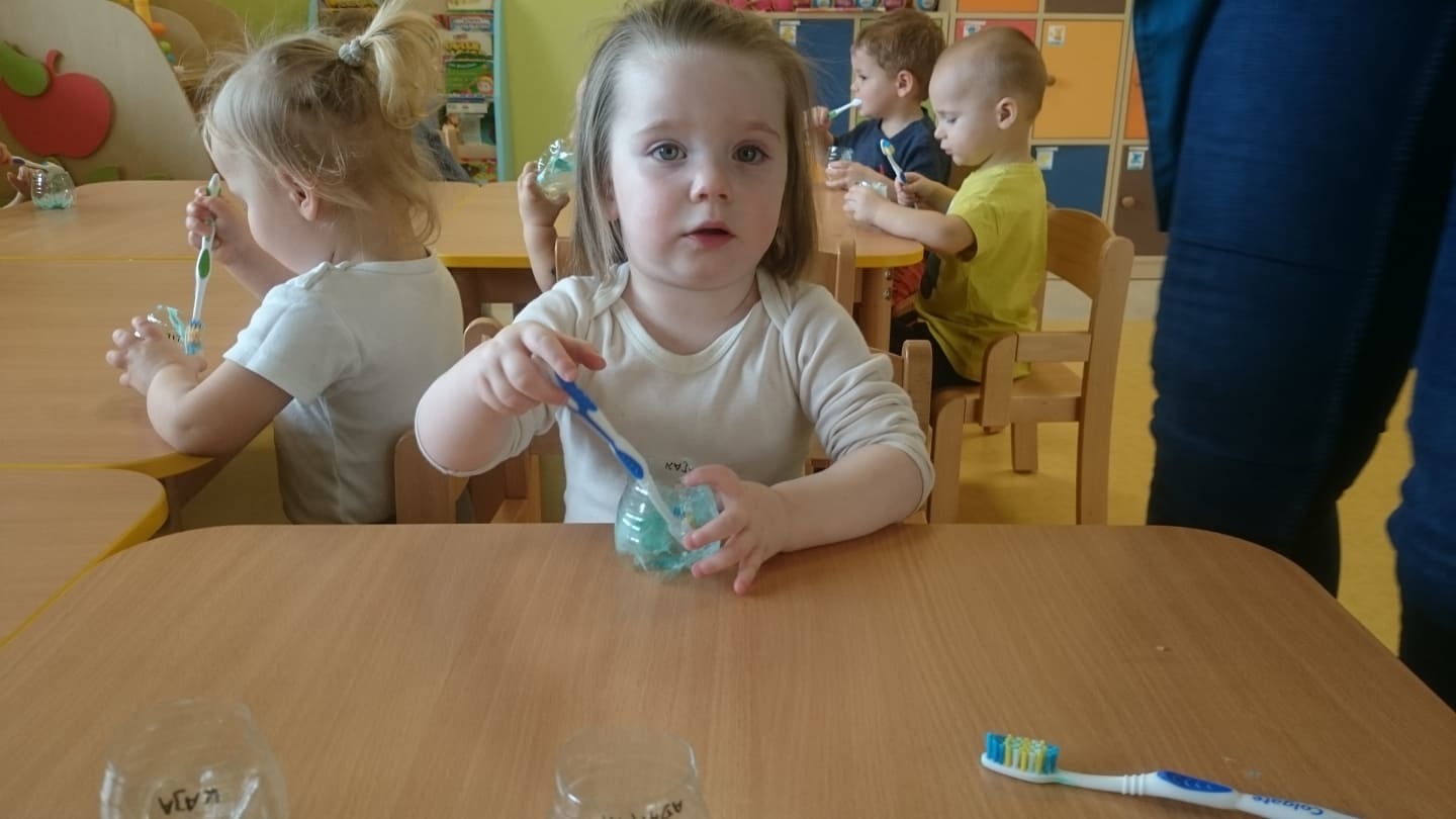 Dla naszych podopiecznych kolejny rok pobytu w żłobku to czas zdobywania nowych umiejętności oraz wzmacniania dobrych nawyków. Ostatnio dzieci uczestniczyły w treningu czystości. Ciocie zwróciły uwagę, jak ważne podczas codziennej higieny, jest mycie zębów. Zatem w ruch poszły pasty i szczoteczki do zębów. Najpierw odbyło się szczotkowanie zębów a potem świetna zabawa...