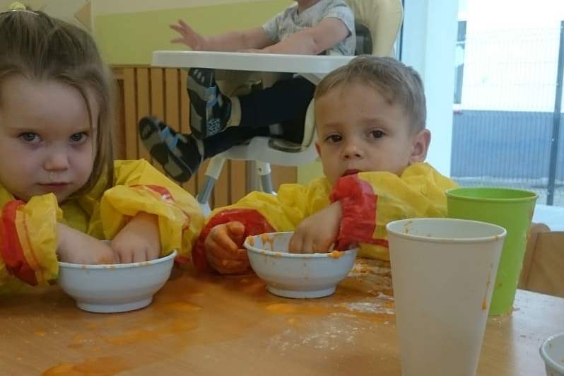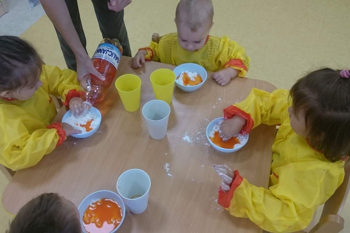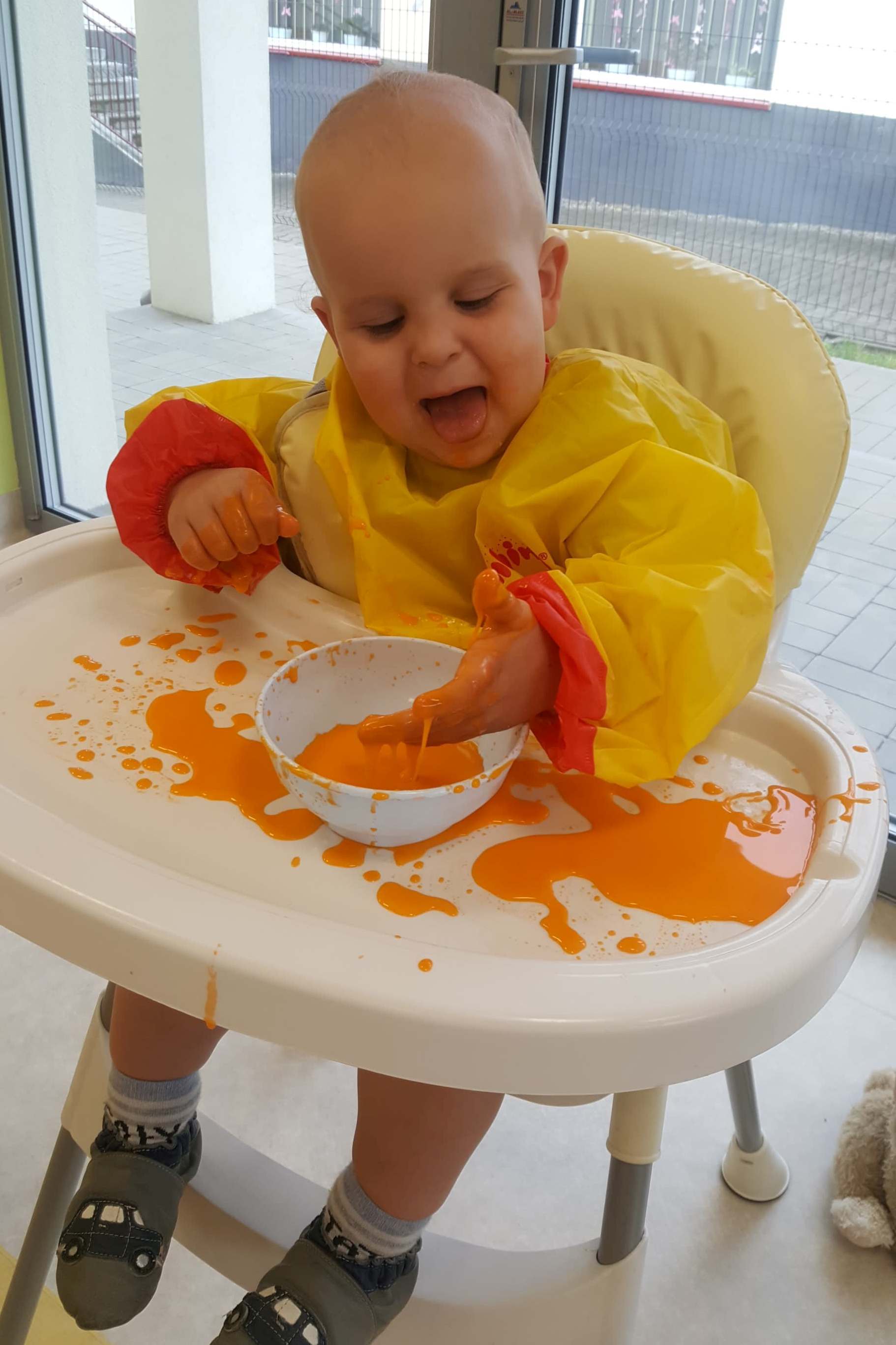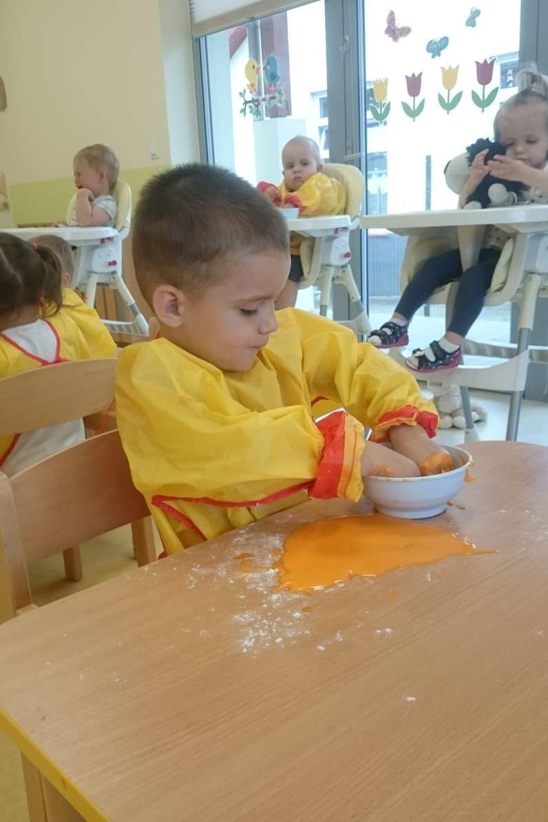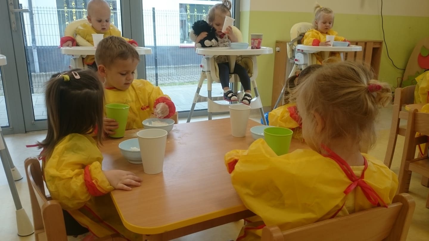 Wakacje już trwają a my wcale nie odpoczywamy. Na zajęciach sensorycznych bawiliśmy się cieczą nienewtonowską, która pod wpływem nacisku zmienia swoje właściwości. Do jej przygotowania wystarczy skrobia ziemniaczana i woda. A jeśli chcemy uzyskać kolor dodajemy barwnik. Trzeba przyznać, że oprócz świetnej zabawy to także miłe odprężenie dla dłoni. Z kolei na kolejnych zajęciach królowała folia bąbelkowa; można było po niej biegać, skakać gołymi stópkami, a potem ściskać w rączkach – jak wiadomo dla naszych żłobkowiczów to były niesamowite doznania. Dzieciaczki były zadowolone, co widać na załączonych zdjęciach.