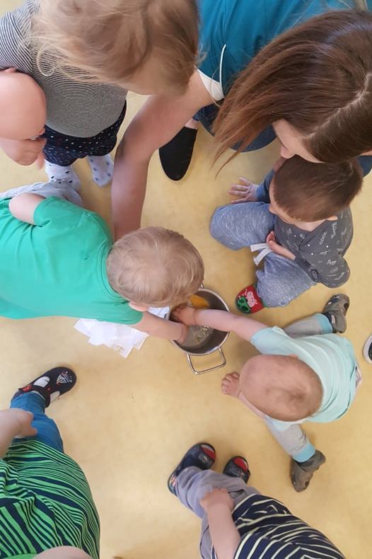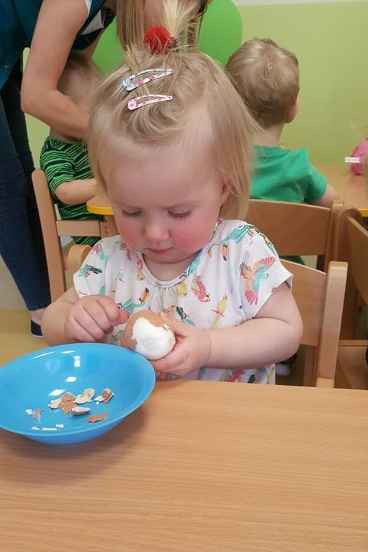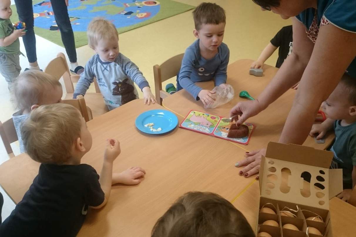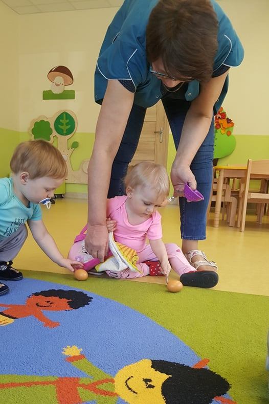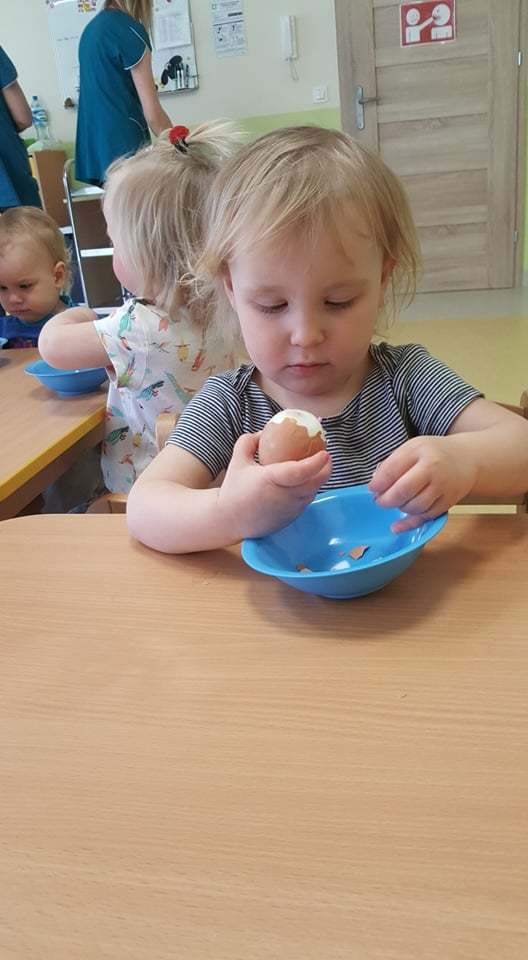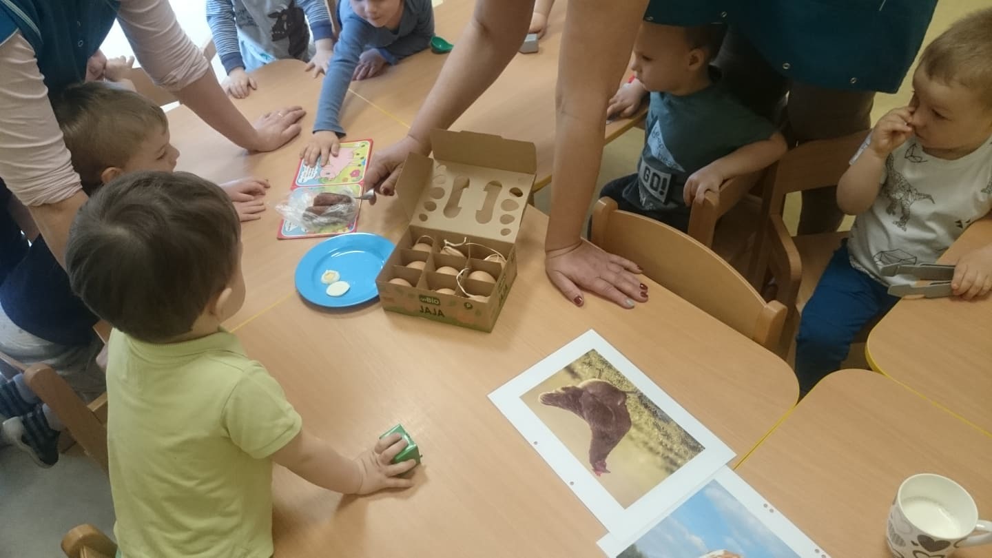 Kto mieszka w wiejskiej zagrodzie i skąd się bierze masło, jajka, mleko, ser czy kiełbaska? Tego wszystkiego dowiedzieli się nasi żłobkowicze podczas tygodnia, w którym tematem przewodnim były zwierzęta hodowlane. Oczywiście nie obyło się bez degustacji produktów pochodzenia zwierzęcego, co bardzo spodobało się dzieciom. Tematem zajęć stało się w końcu „ jajko” i różne jego zastosowania. W ten oto sposób wkroczyliśmy w tematykę Świąt Wielkanocnych. Dopełnieniem zajęć były wykonane prace plastyczne, które można oglądać na tablicach w żłobku.