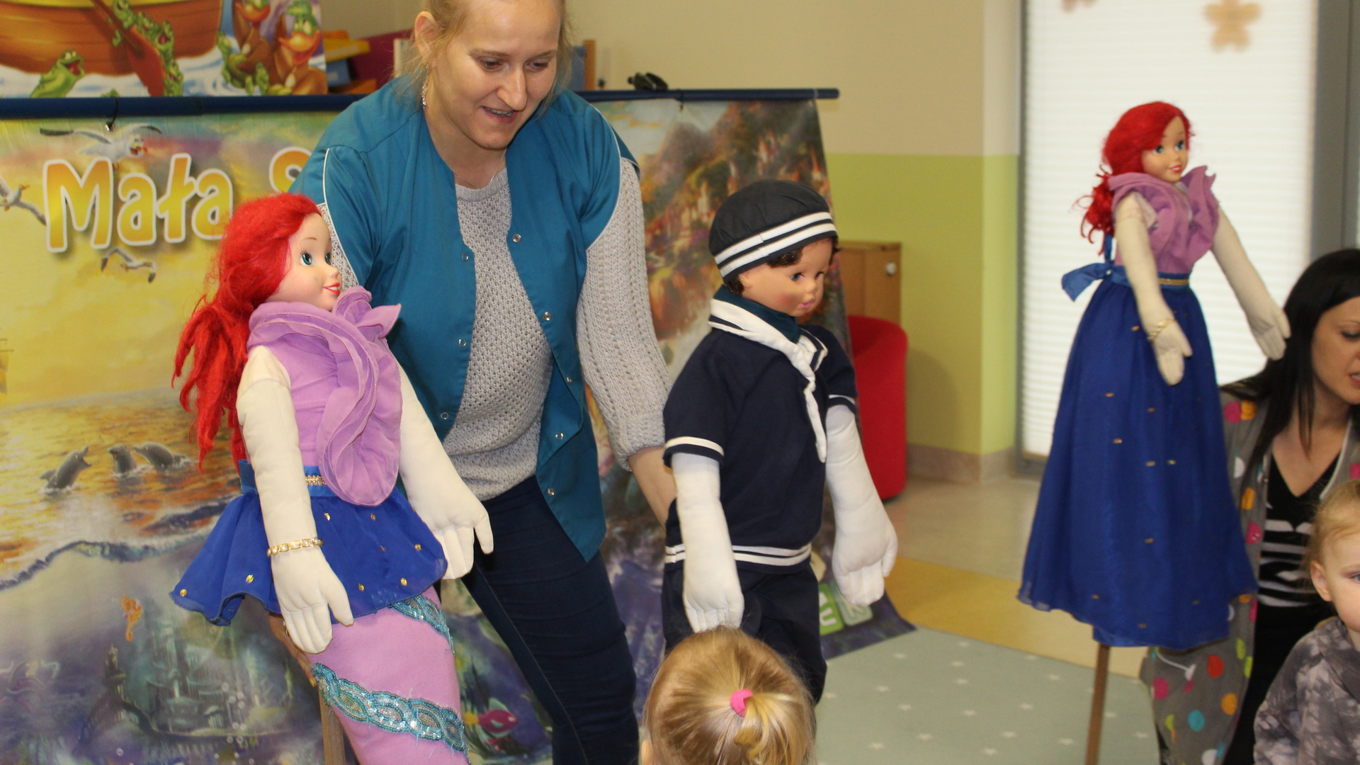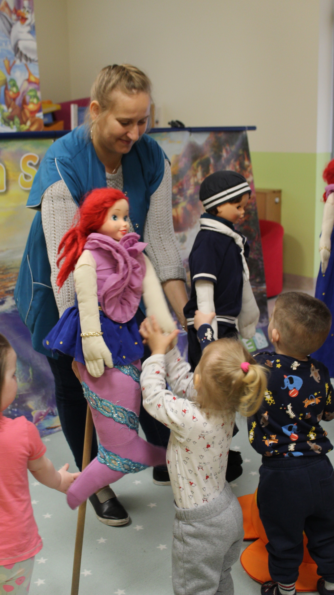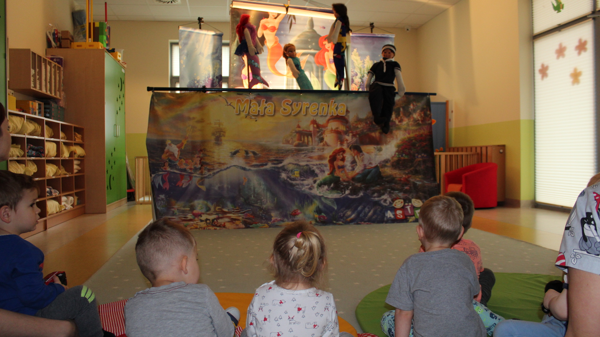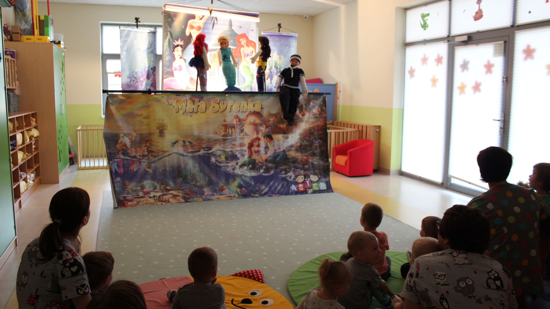 15 maja 2019 r. gościliśmy w żłobku Teatr "Aster" z Grybowa z przedstawieniem kukiełkowym "Mała Syrenka", nawiązujący do znanej baśni Hansa Chrystiana Andersena. Piękna i kolorowa scenografia oraz wesoły podkład muzyczny, przeniosły dzieci w czarujący świat baśni.