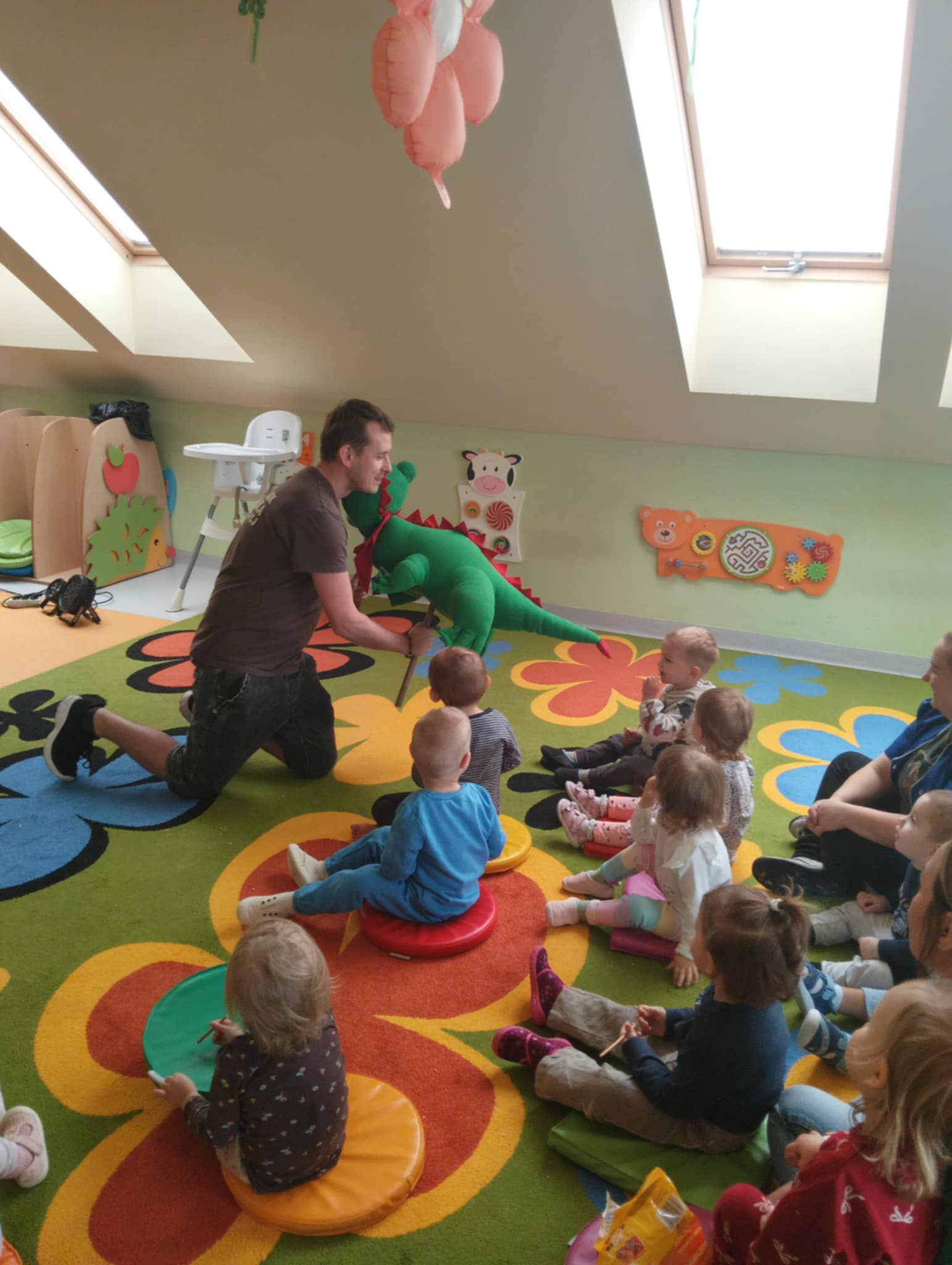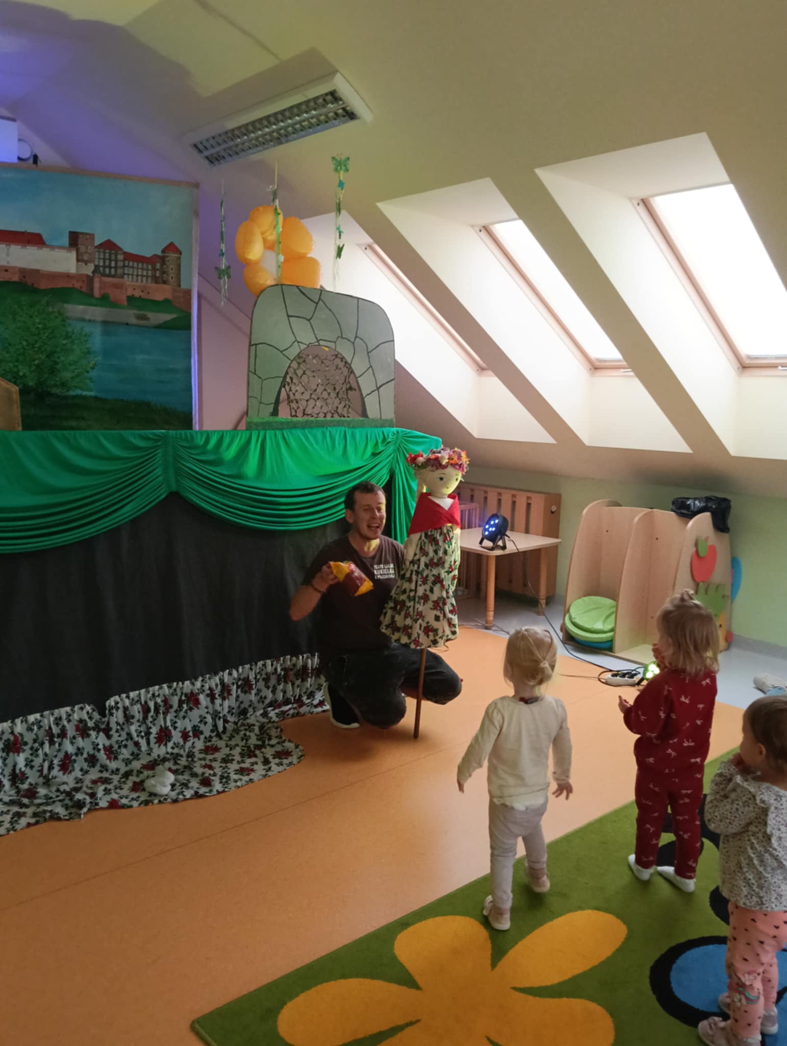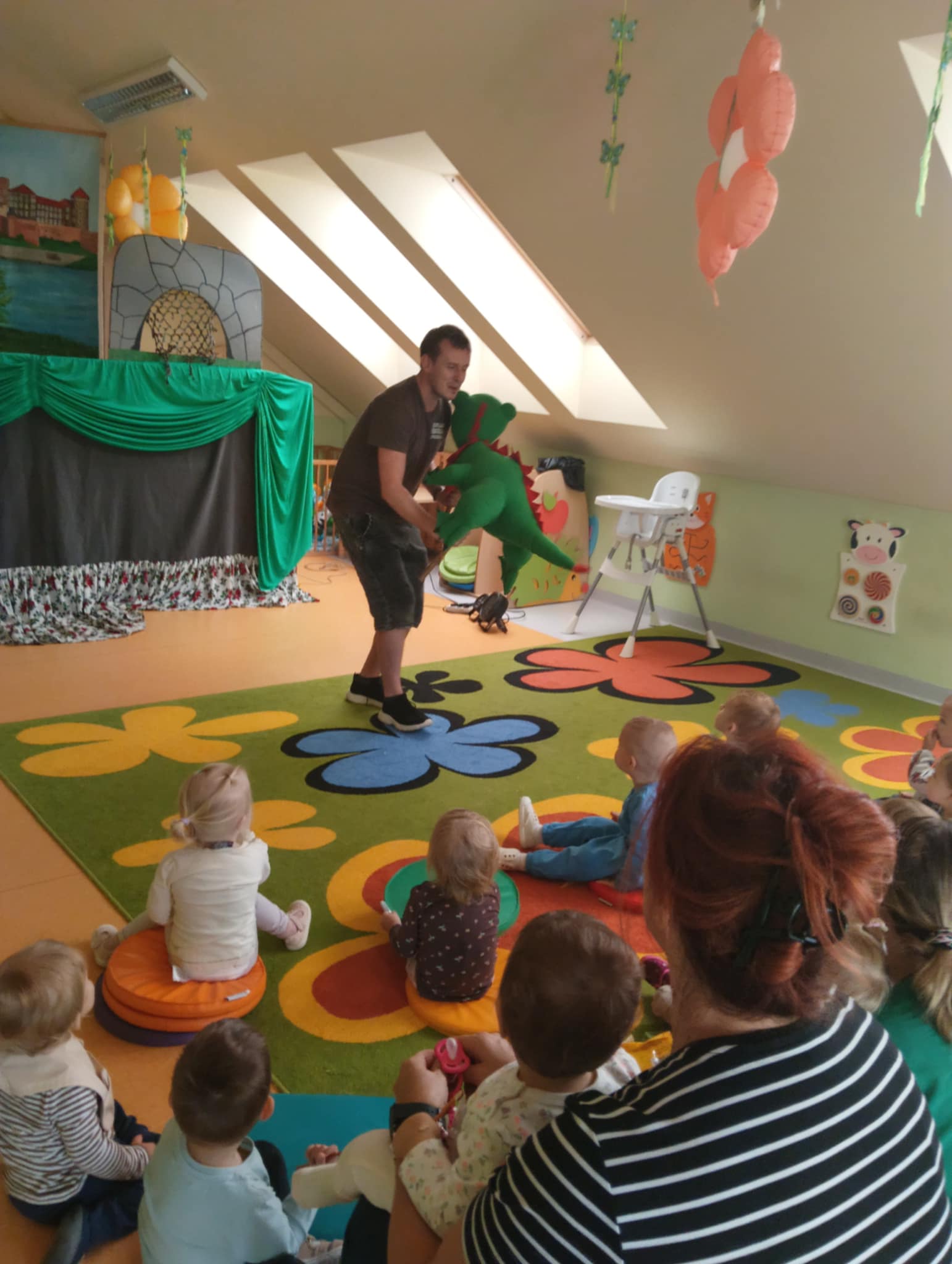 Dziś w naszym żłobku odbyło się wyjątkowe spotkanie ze światem teatru! Odwiedził nas Teatrzyk lalek „Kukiełka” z Ptaszkowej, który zaprezentował dzieciom barwne i pełne humoru przedstawienie o Smoku Wawelskim.
