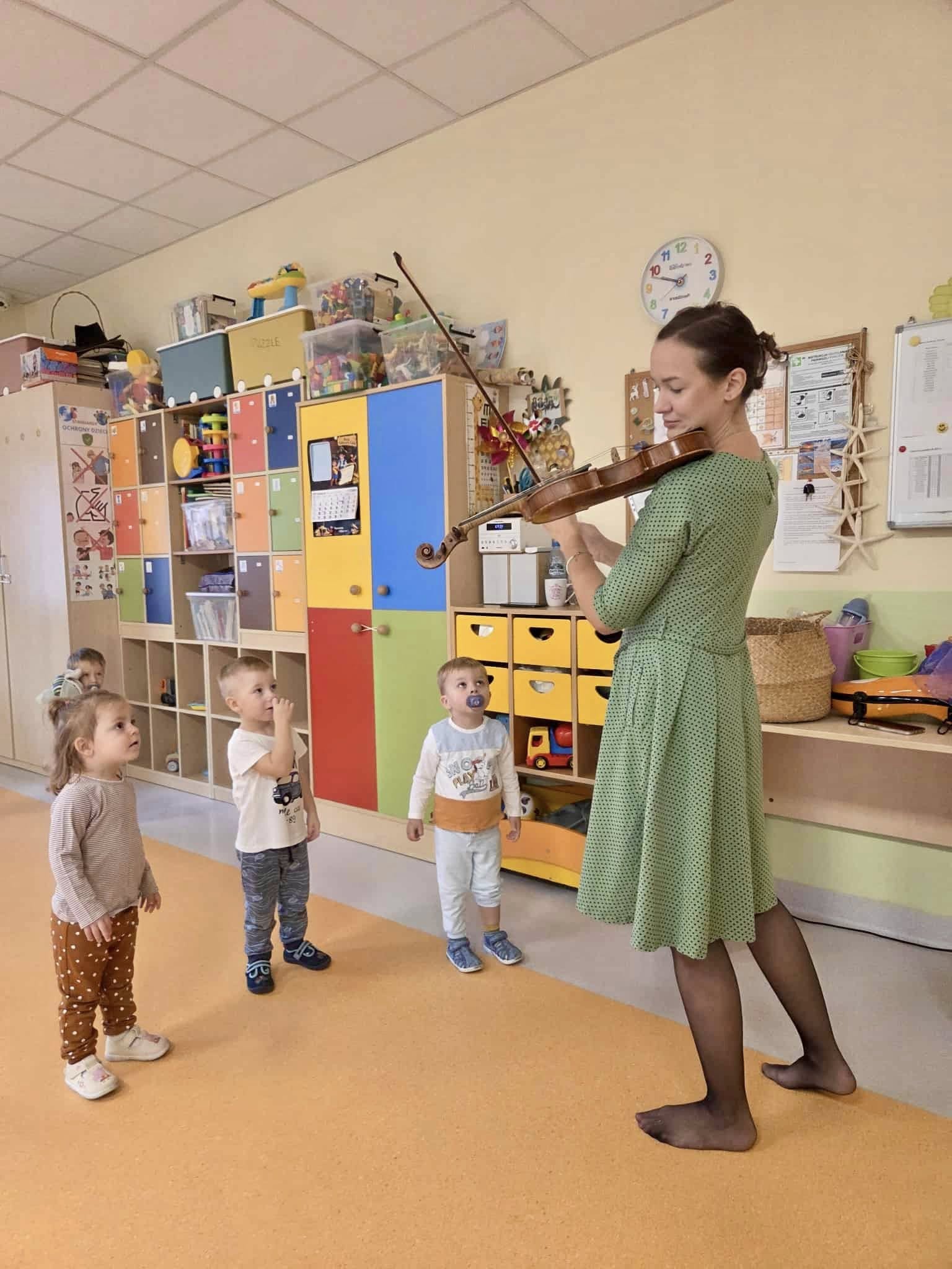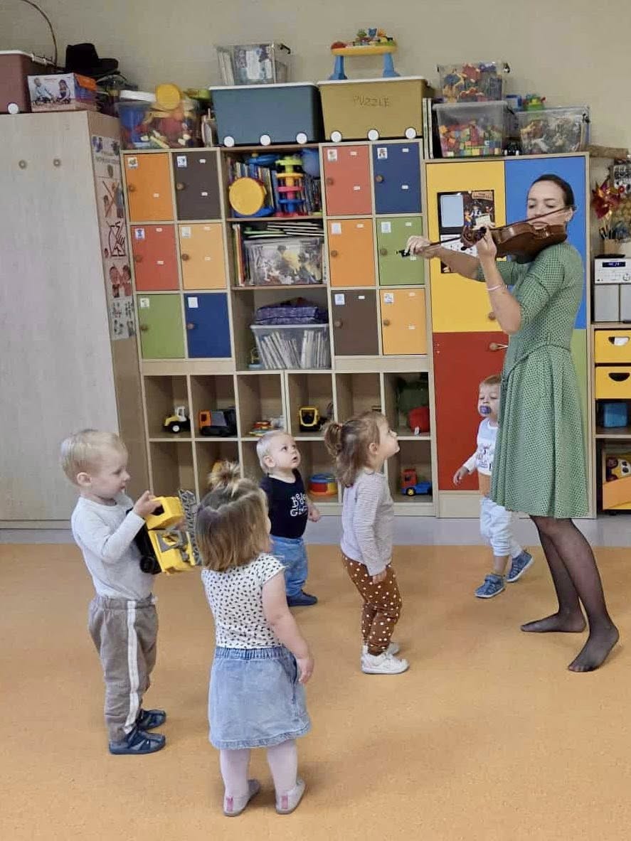 Zajęcia prowadzone są w formie krótkich, swobodnych aktywności muzycznych, które wspierają rozwój emocjonalny, językowy i społeczny dziecka. Każde spotkanie to radość, śmiech i wspólne muzykowanie!