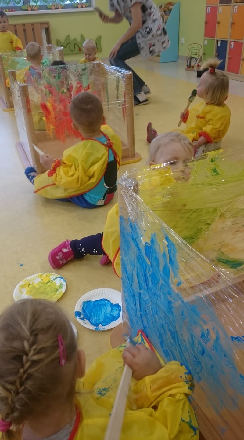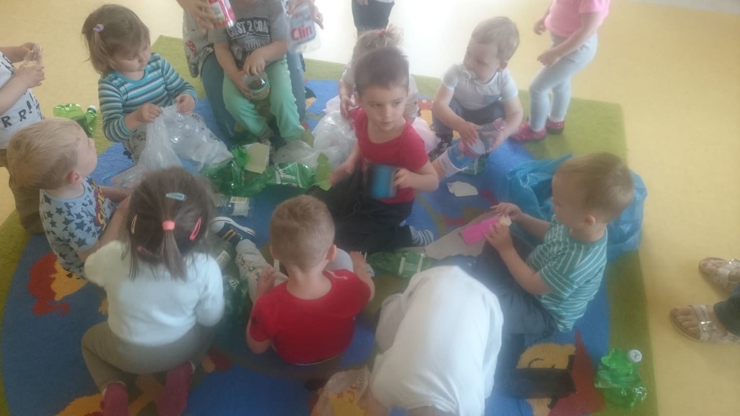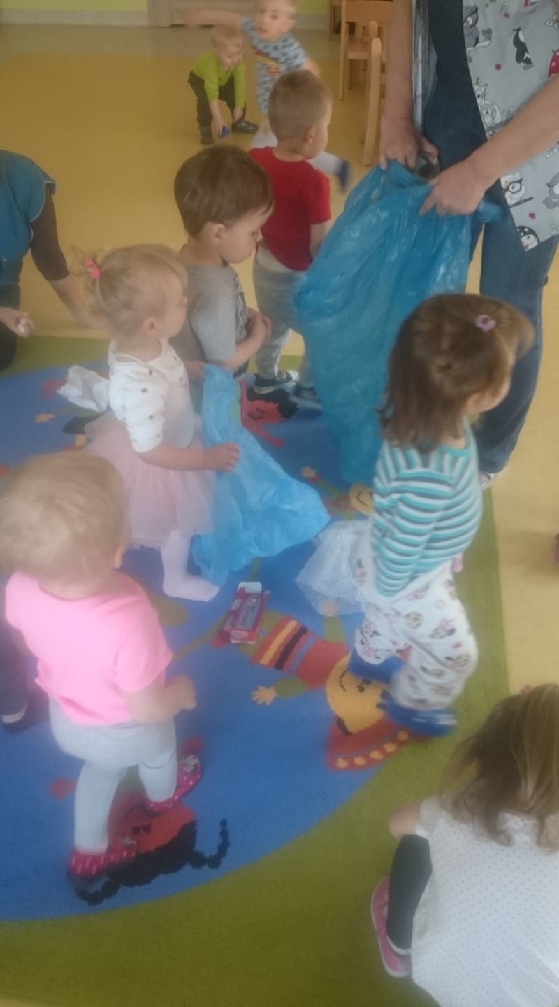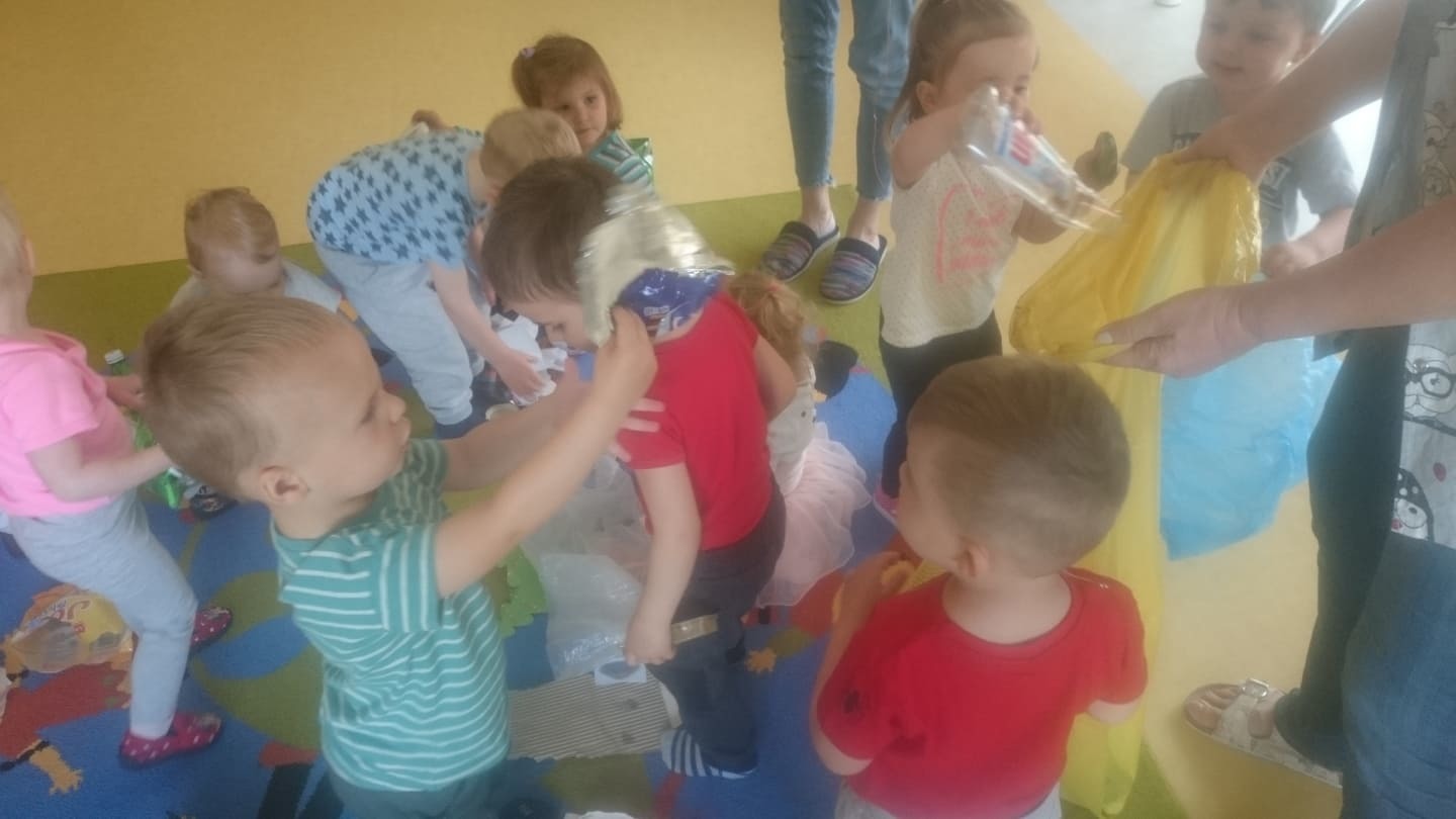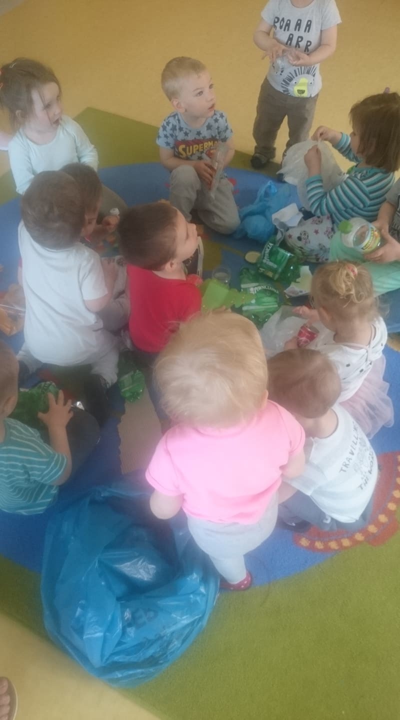 W majowy dzień sala żłobkowa zamieniła się w piękną łąkę, w ruch poszły pędzle i farba … Wiosenna łąka prezentowała się znakomicie! Następnie w sali zabaw pojawił się piasek, kamyki, ziemia. Można było dotykać, bawić się, doświadczać a potem przyszedł czas na wiosenne porządki… Dzieci uczyły się segregować śmieci...