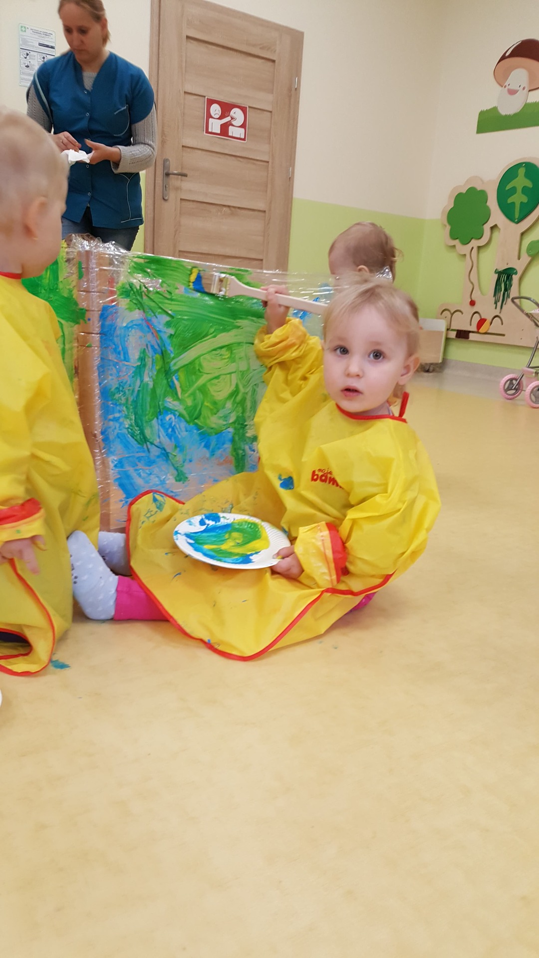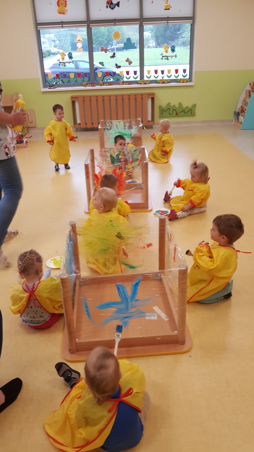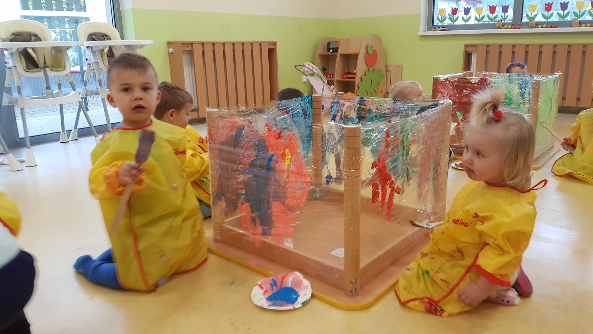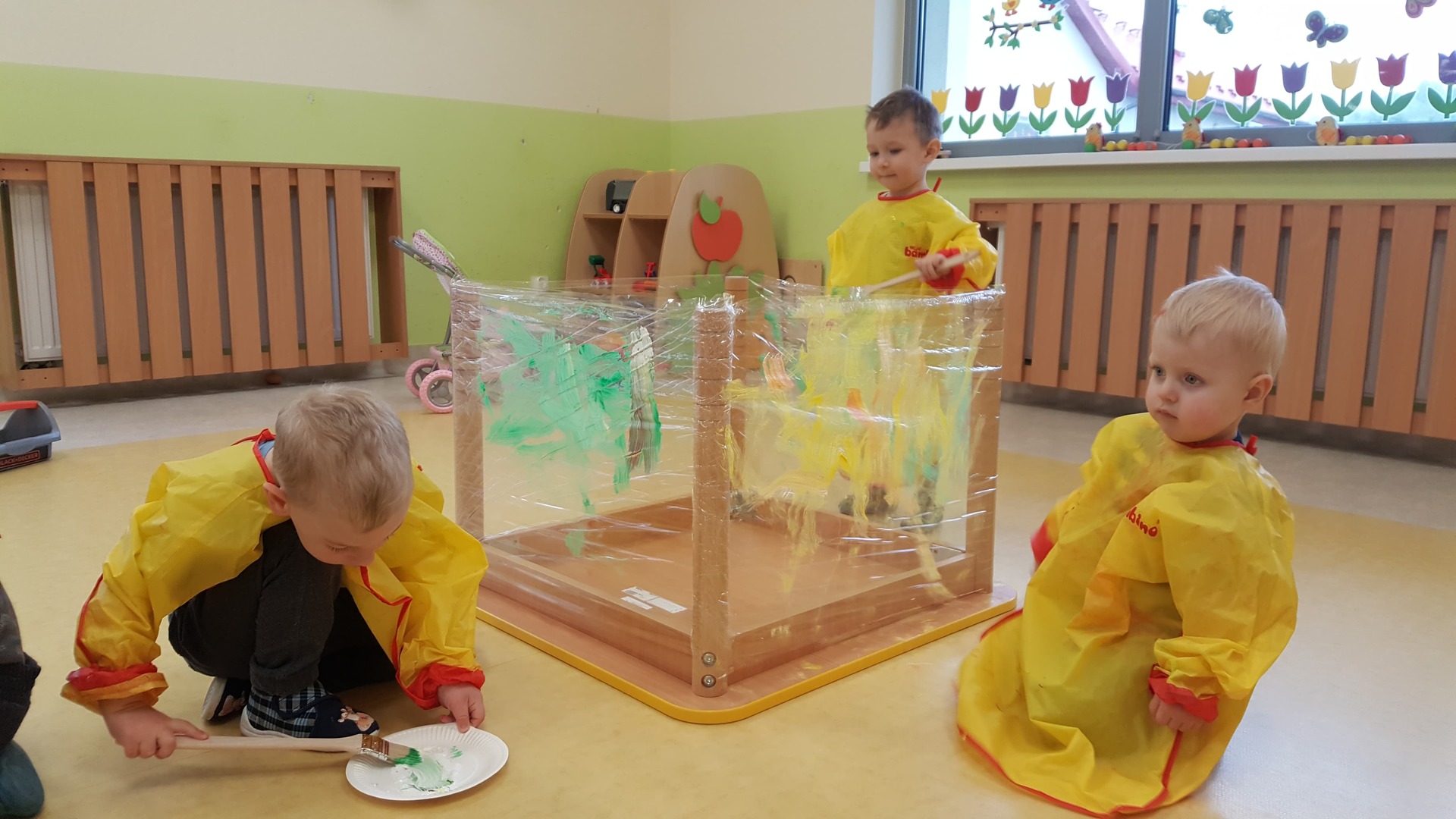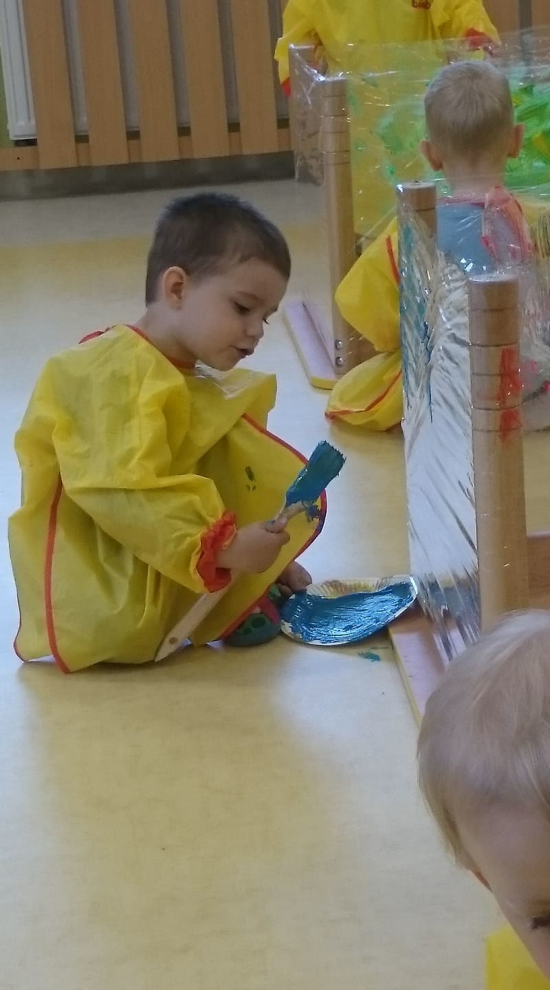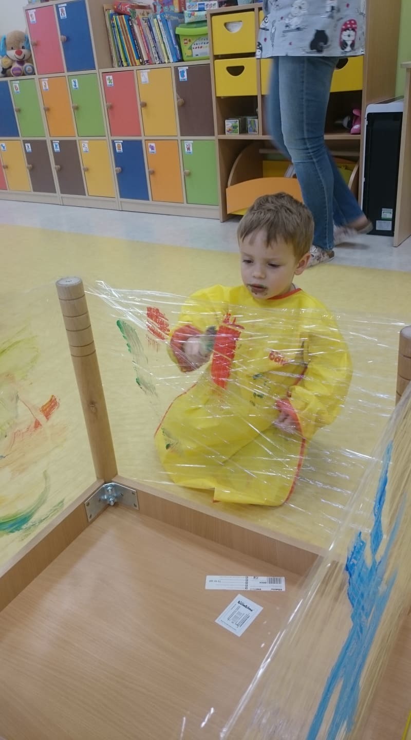 W majowy dzień sala żłobkowa zamieniła się w piękną łąkę, w ruch poszły pędzle i farba … Wiosenna łąka prezentowała się znakomicie! Następnie w sali zabaw pojawił się piasek, kamyki, ziemia. Można było dotykać, bawić się, doświadczać a potem przyszedł czas na wiosenne porządki… Dzieci uczyły się segregować śmieci...