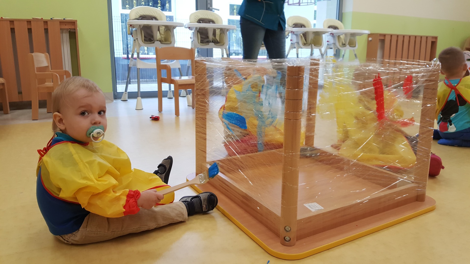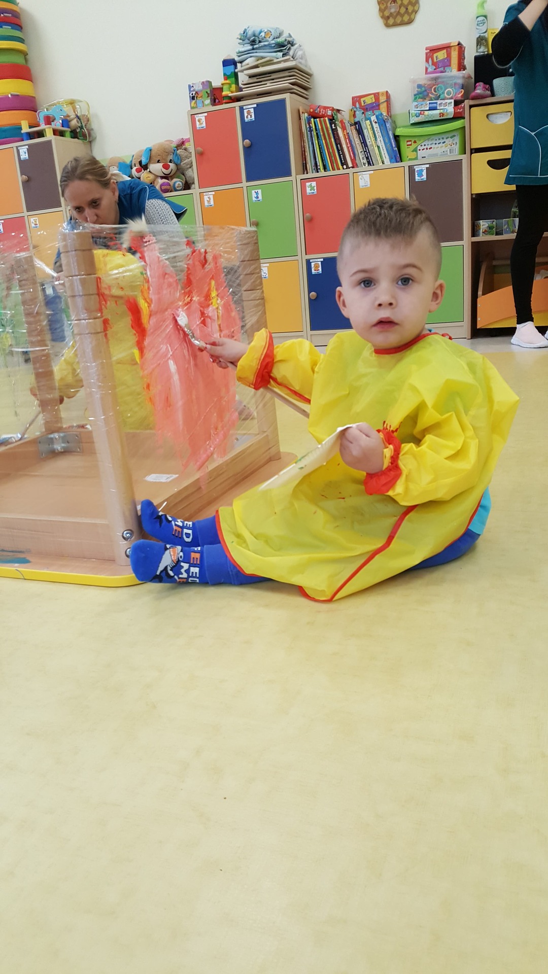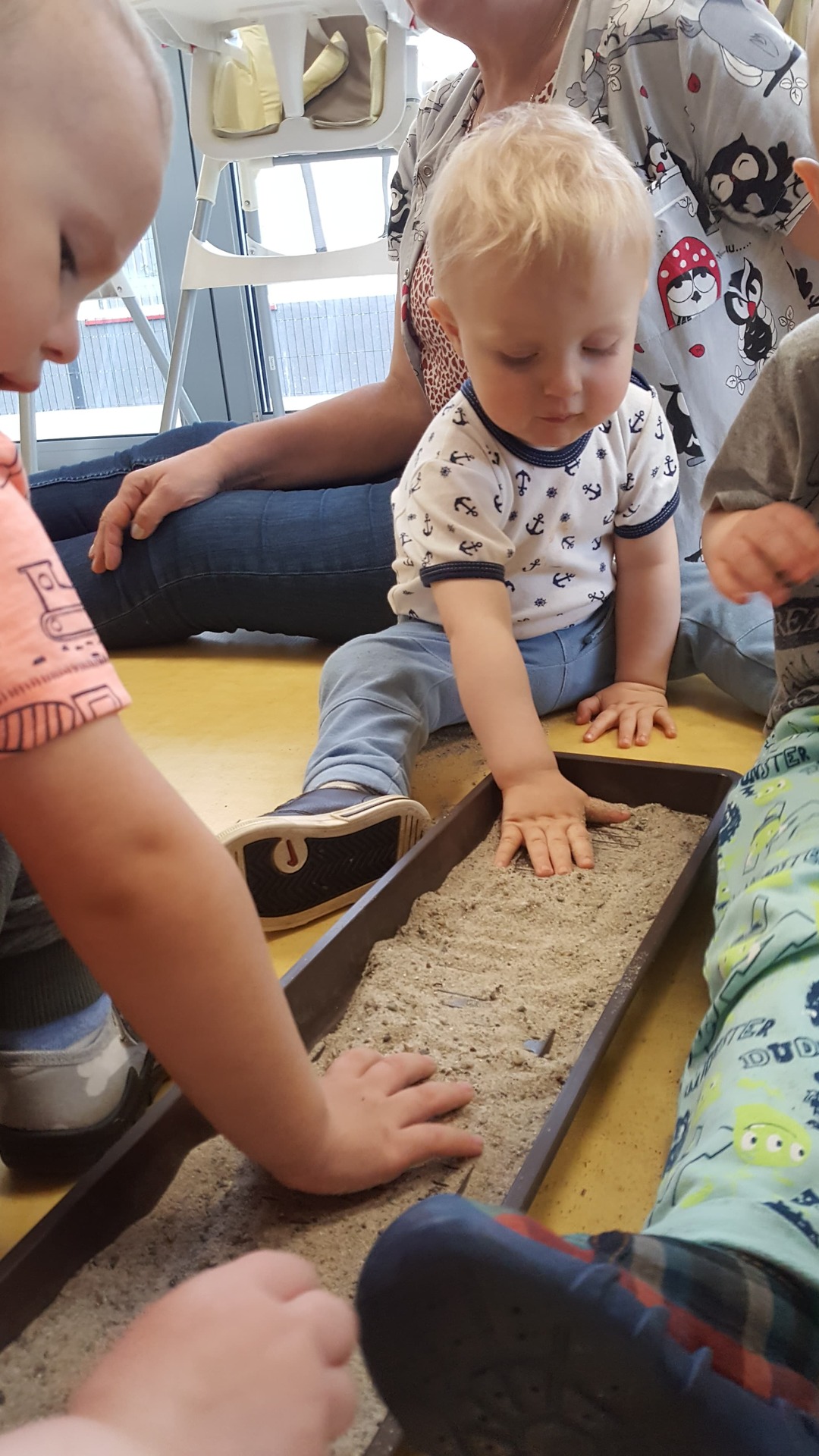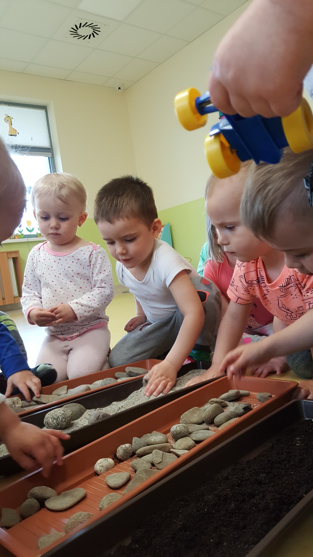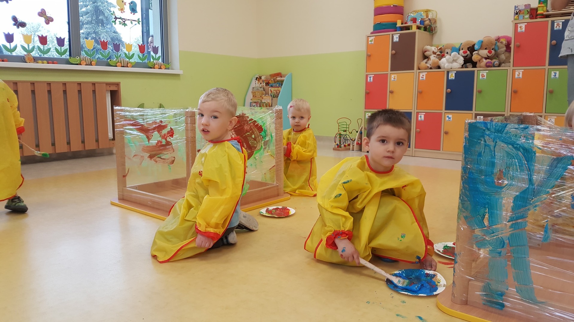 W majowy dzień sala żłobkowa zamieniła się w piękną łąkę, w ruch poszły pędzle i farba … Wiosenna łąka prezentowała się znakomicie! Następnie w sali zabaw pojawił się piasek, kamyki, ziemia. Można było dotykać, bawić się, doświadczać a potem przyszedł czas na wiosenne porządki… Dzieci uczyły się segregować śmieci...