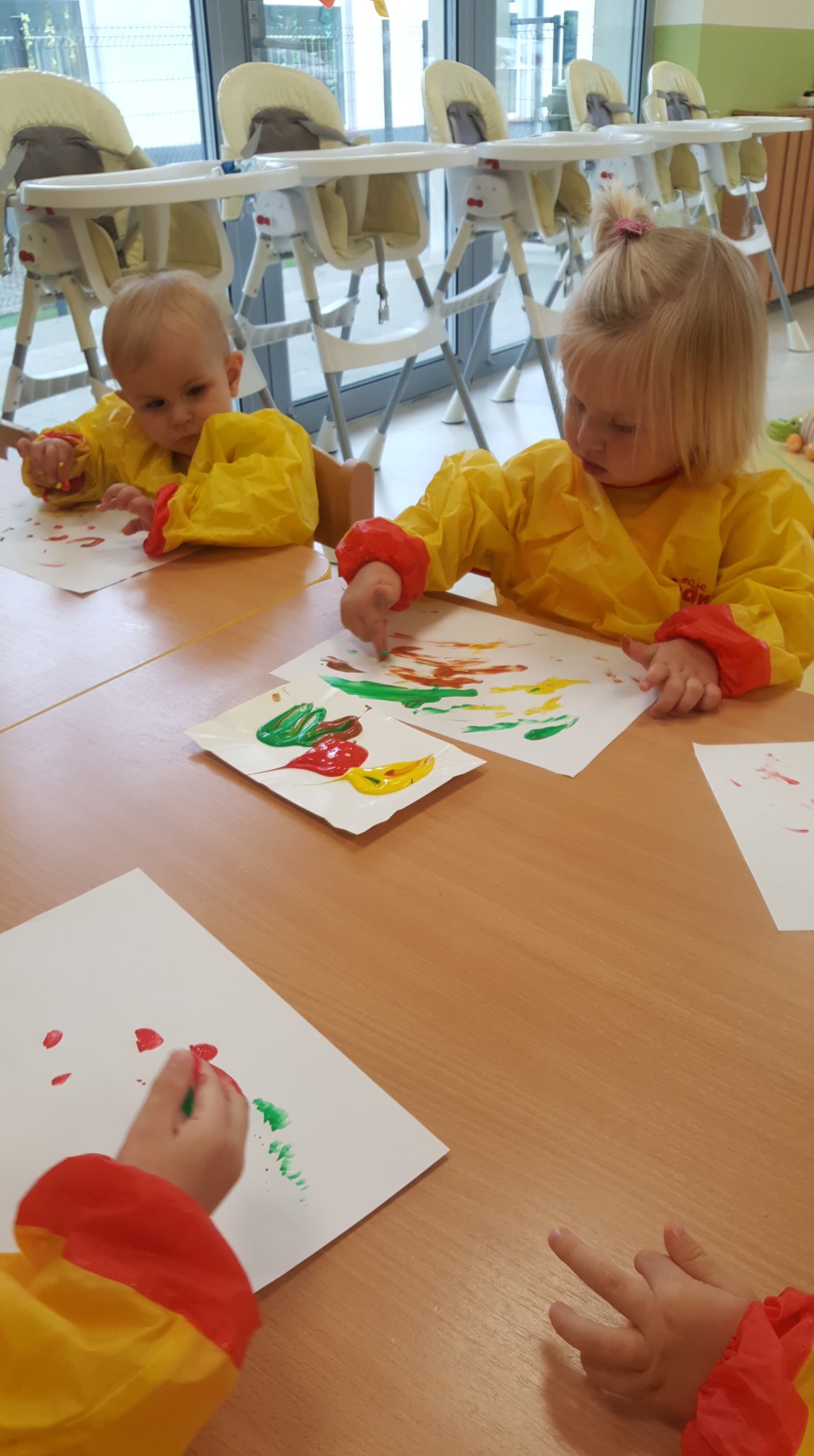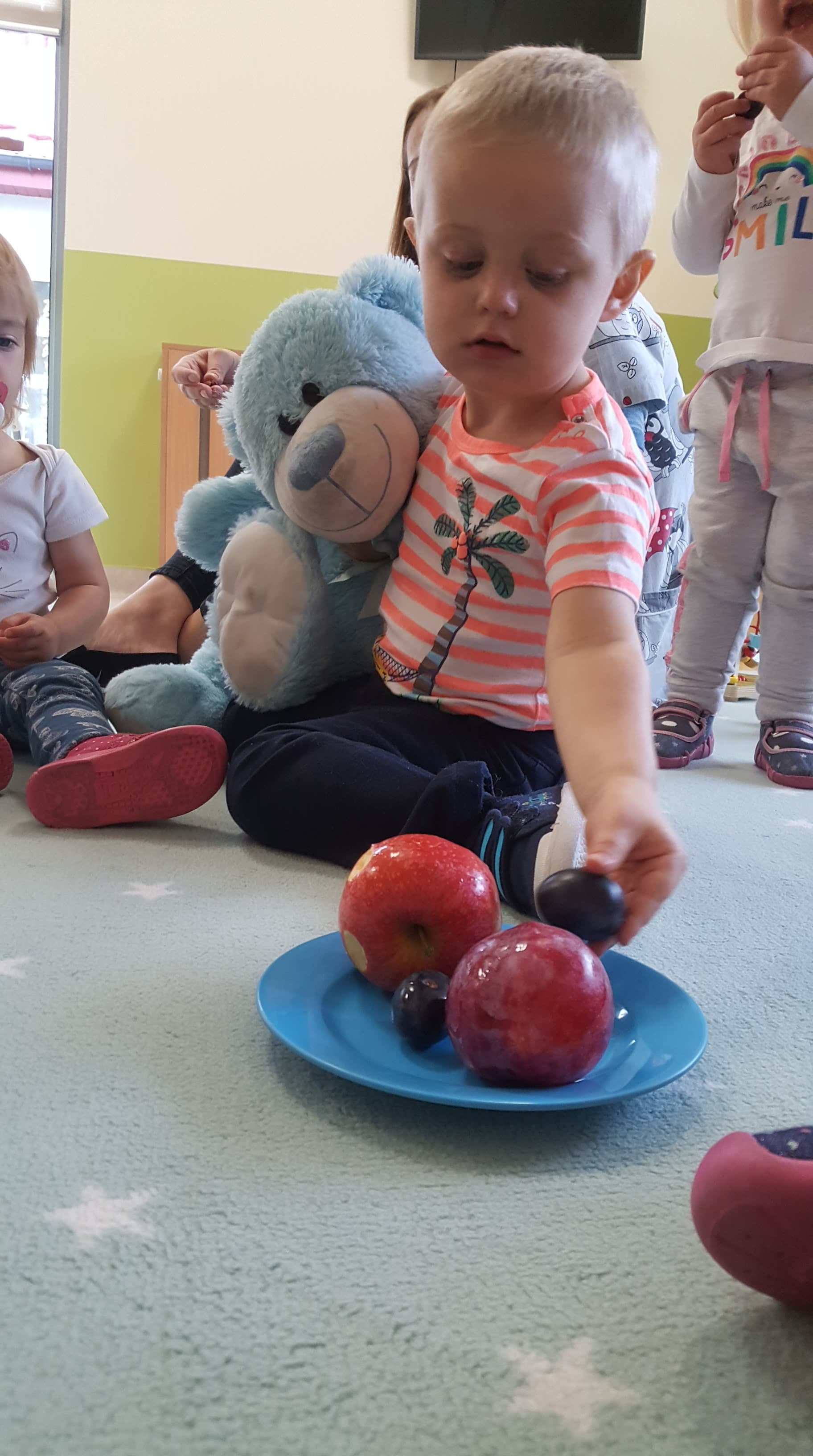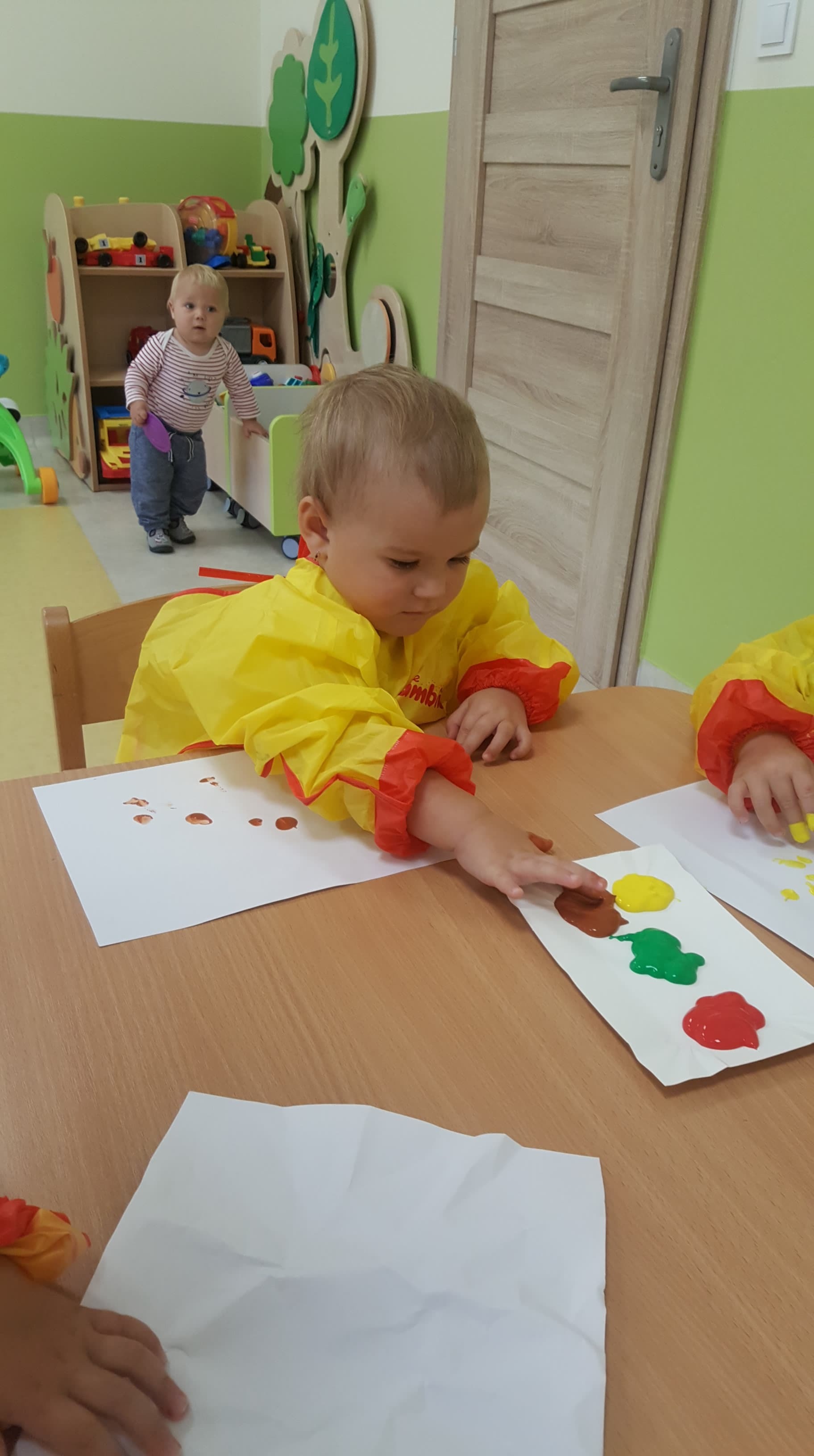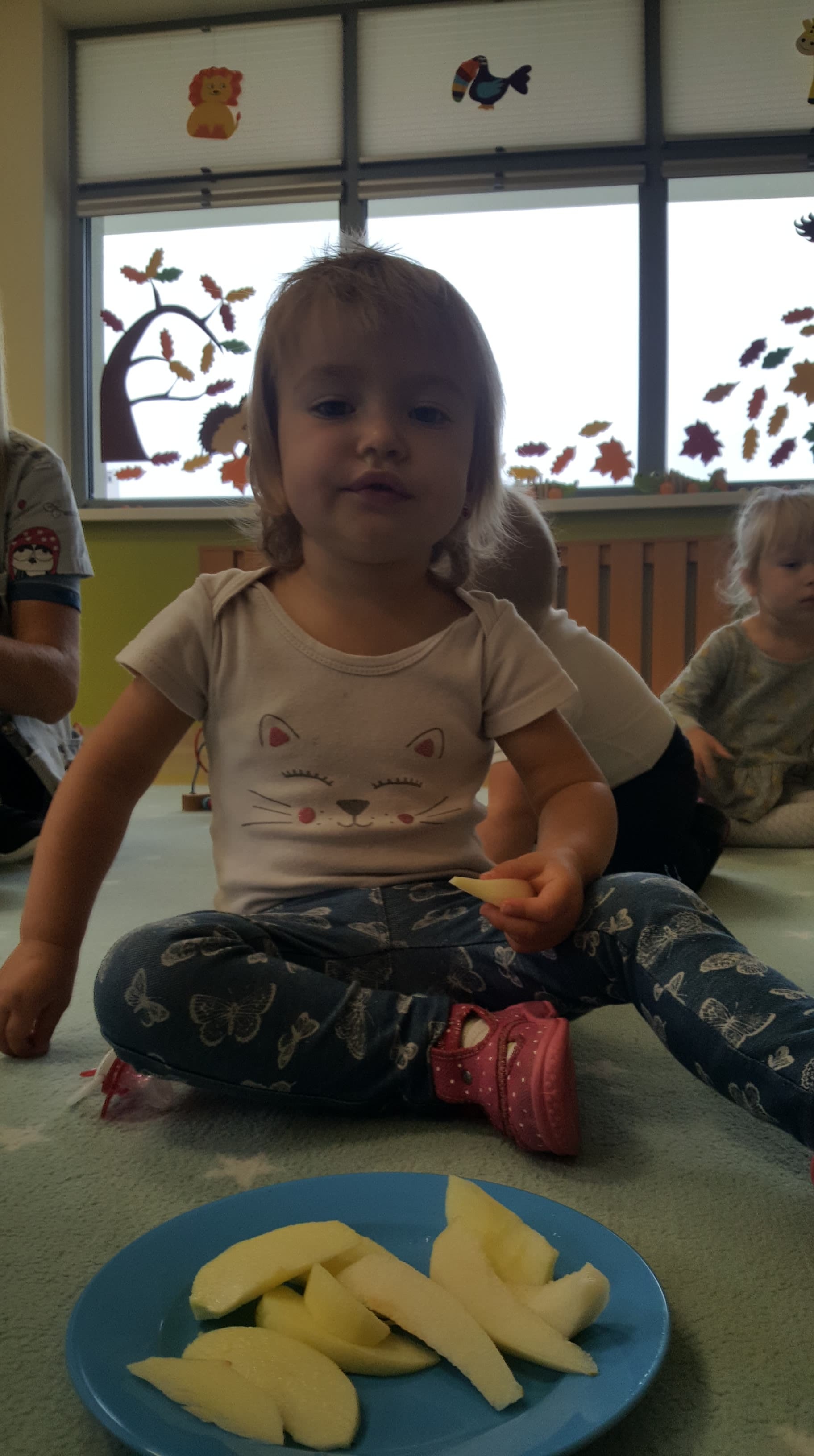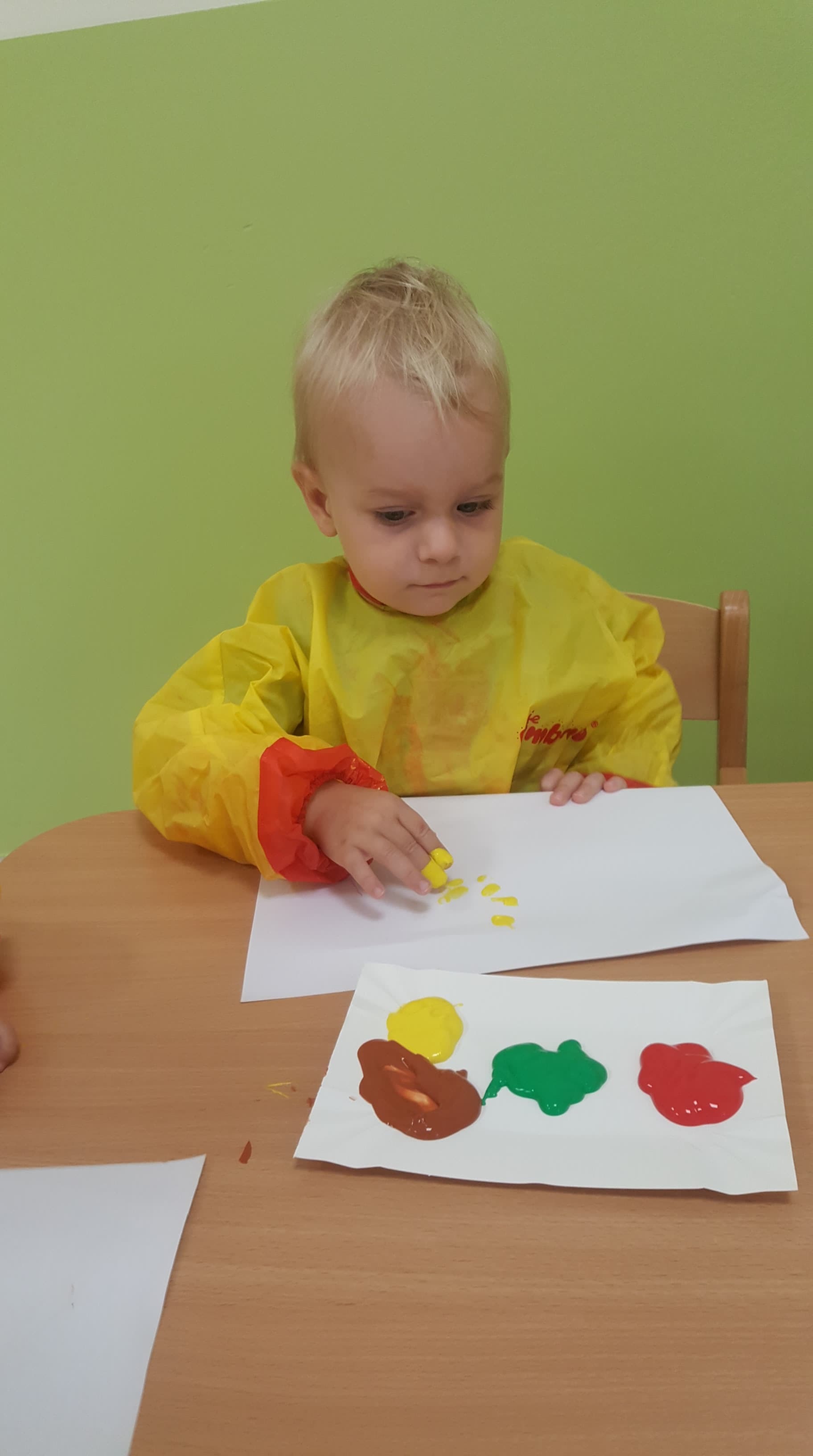 Wrzesień upływa nam na zabawach na placu zabaw, a w bardziej pochmurne dni bawimy się sensorycznie. Na początek w ruch poszły oczywiście farby, potem ciocie stworzyły worki sensoryczne, butelki sensoryczne, a zmysł smaku milusińscy kształtowali poprzez próbowanie różnych owoców. Było pysznie!