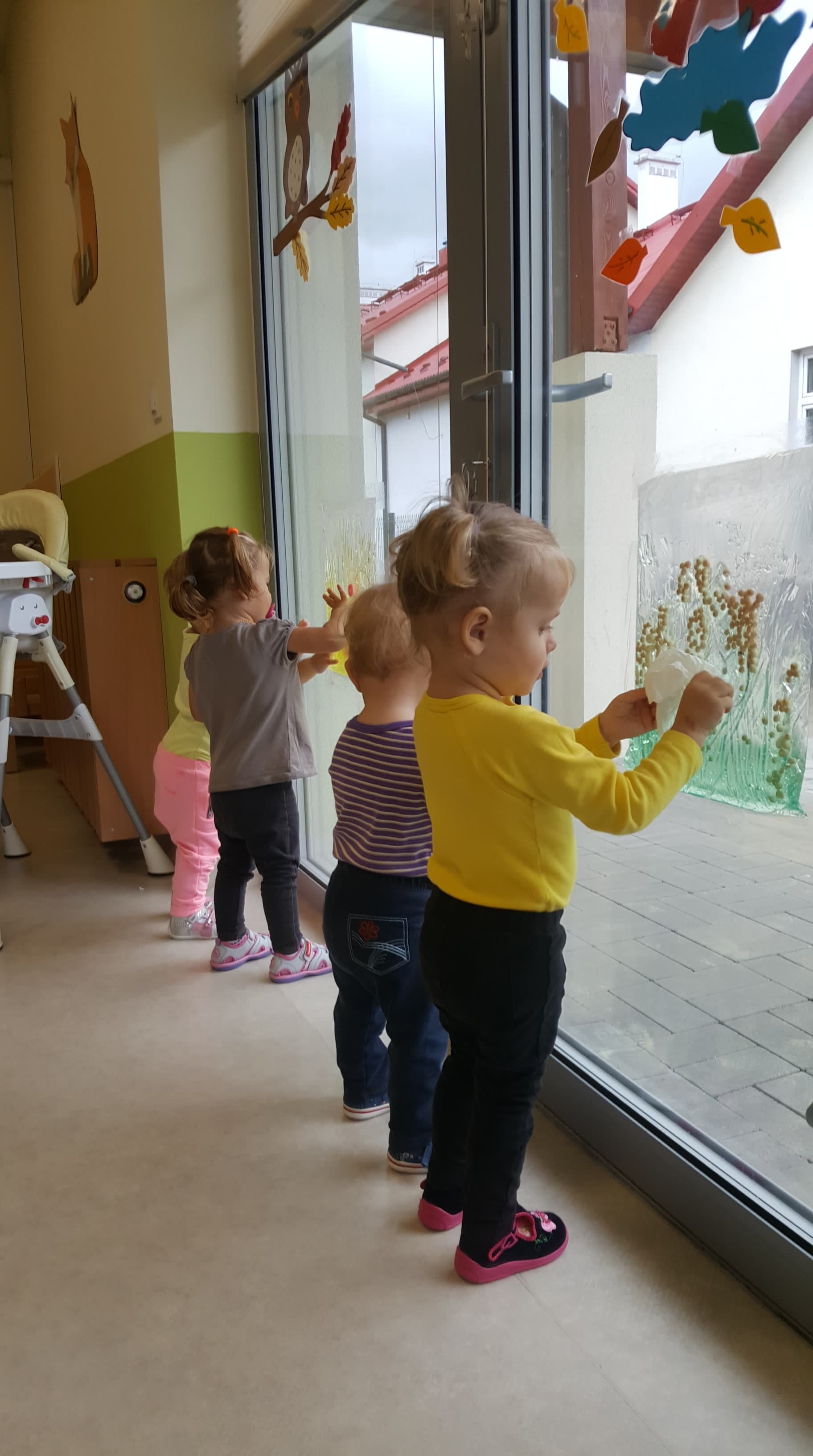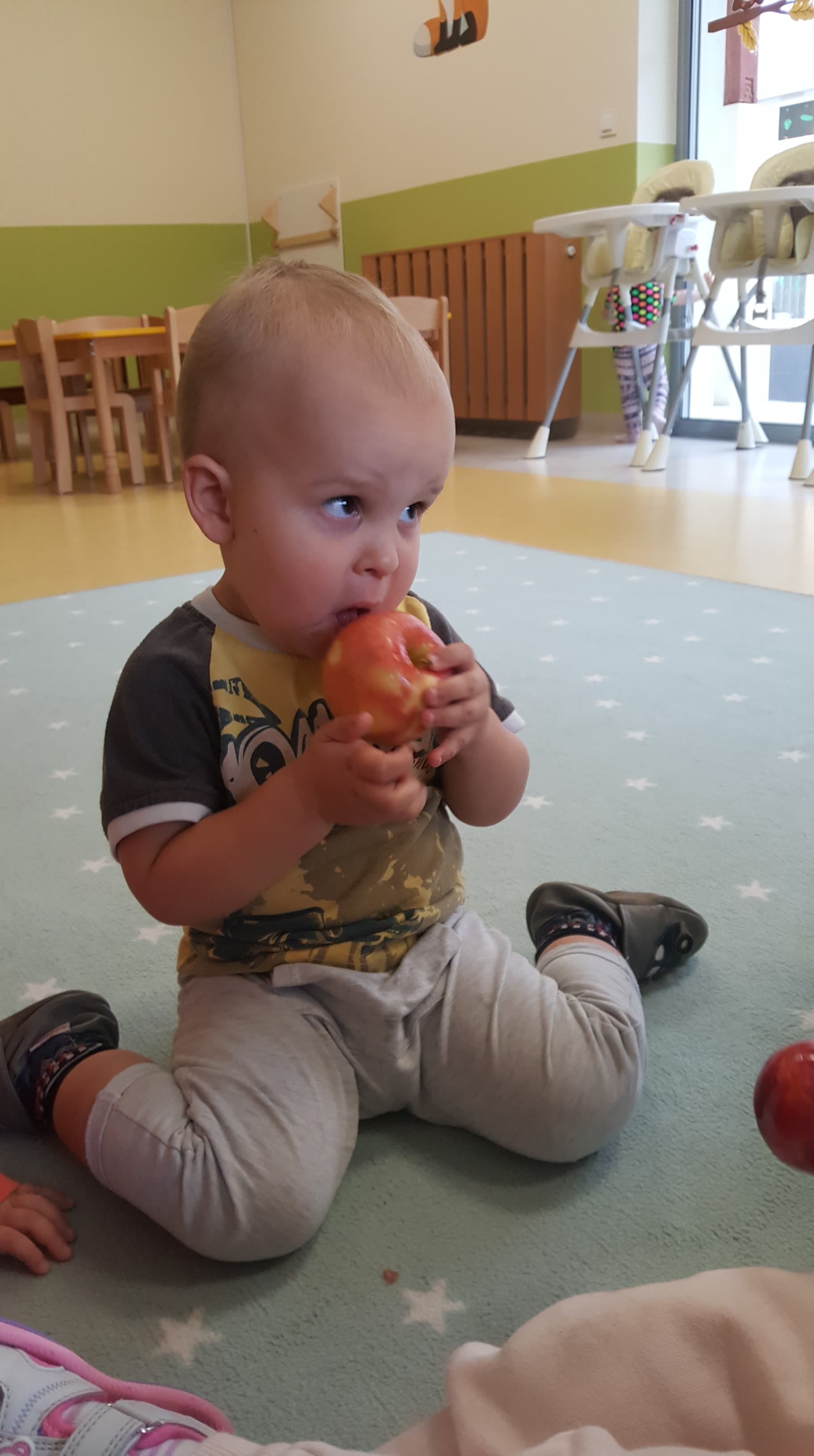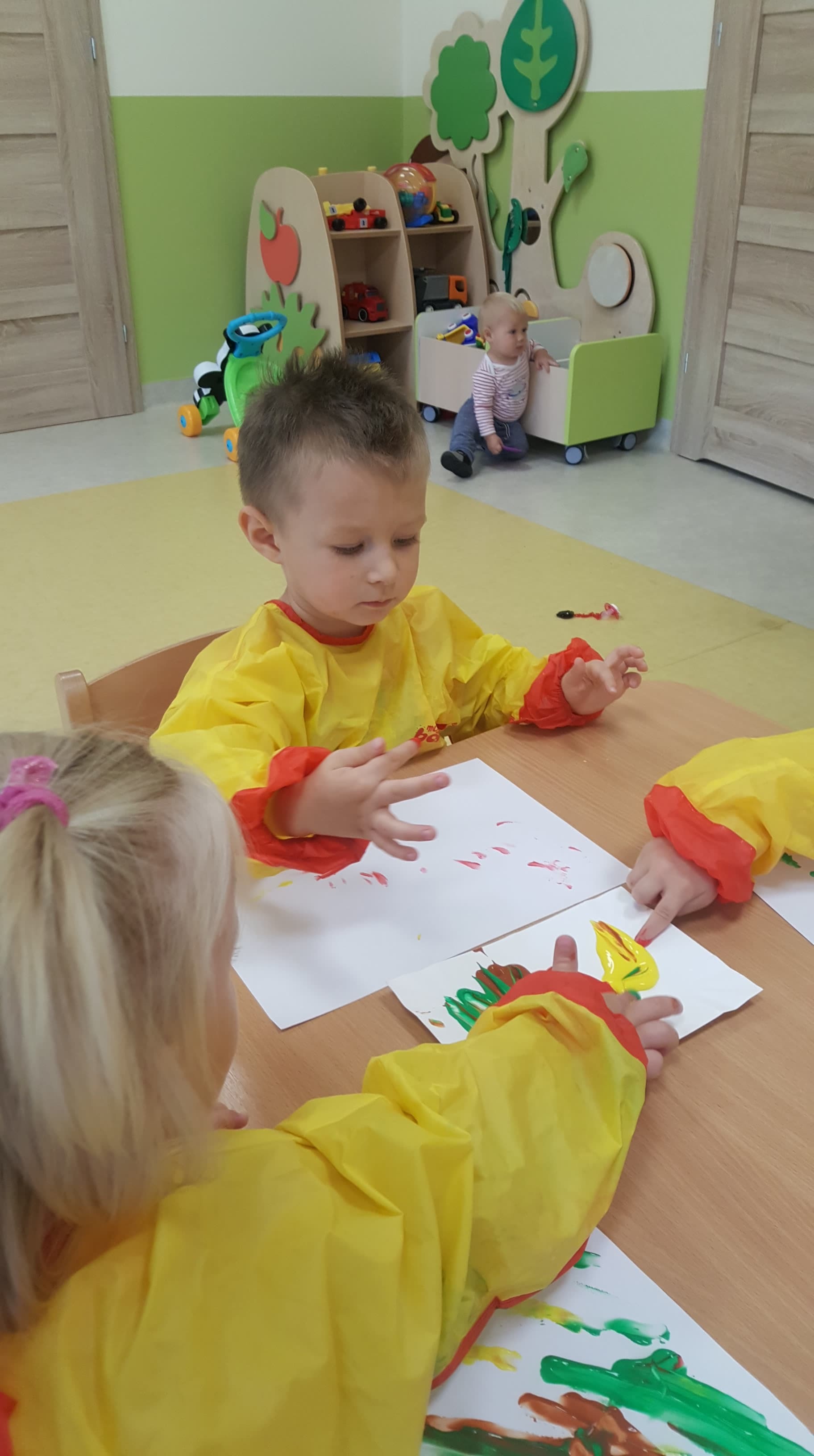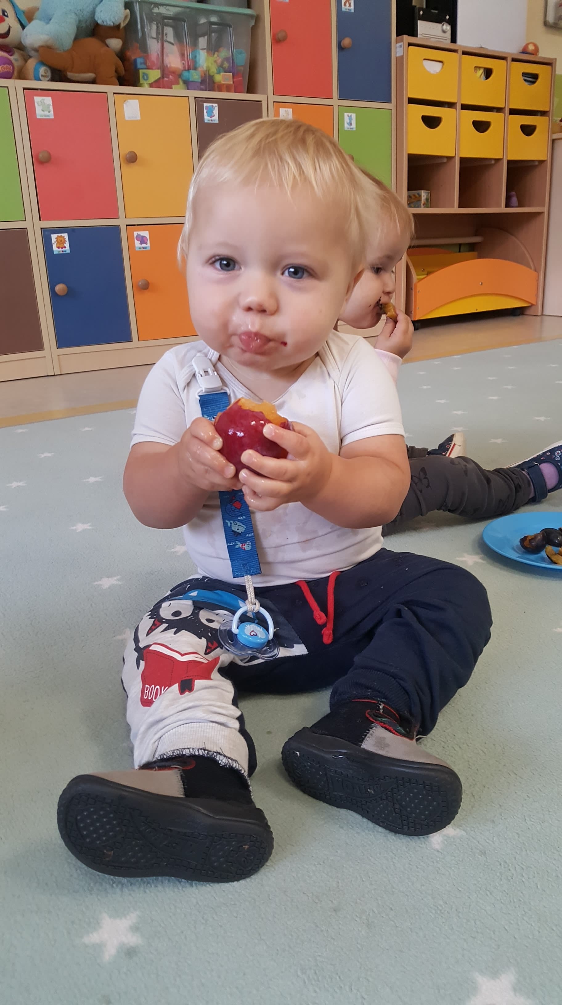 Wrzesień upływa nam na zabawach na placu zabaw, a w bardziej pochmurne dni bawimy się sensorycznie. Na początek w ruch poszły oczywiście farby, potem ciocie stworzyły worki sensoryczne, butelki sensoryczne, a zmysł smaku milusińscy kształtowali poprzez próbowanie różnych owoców. Było pysznie!