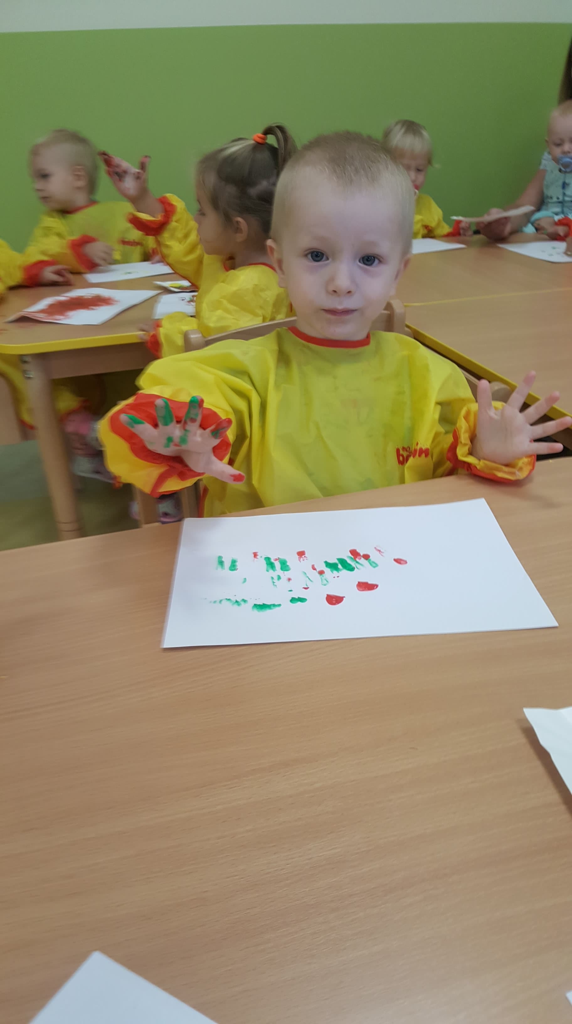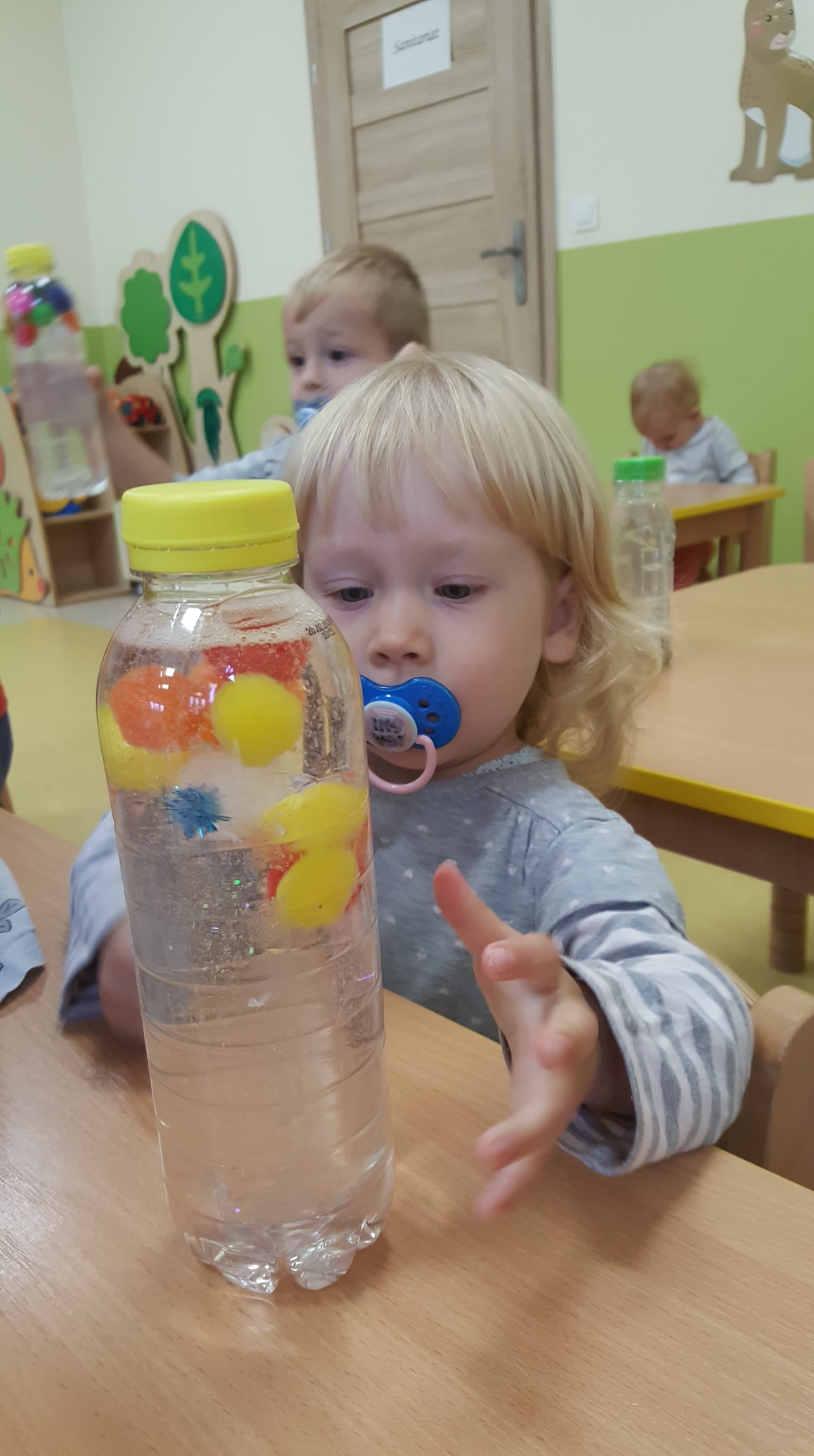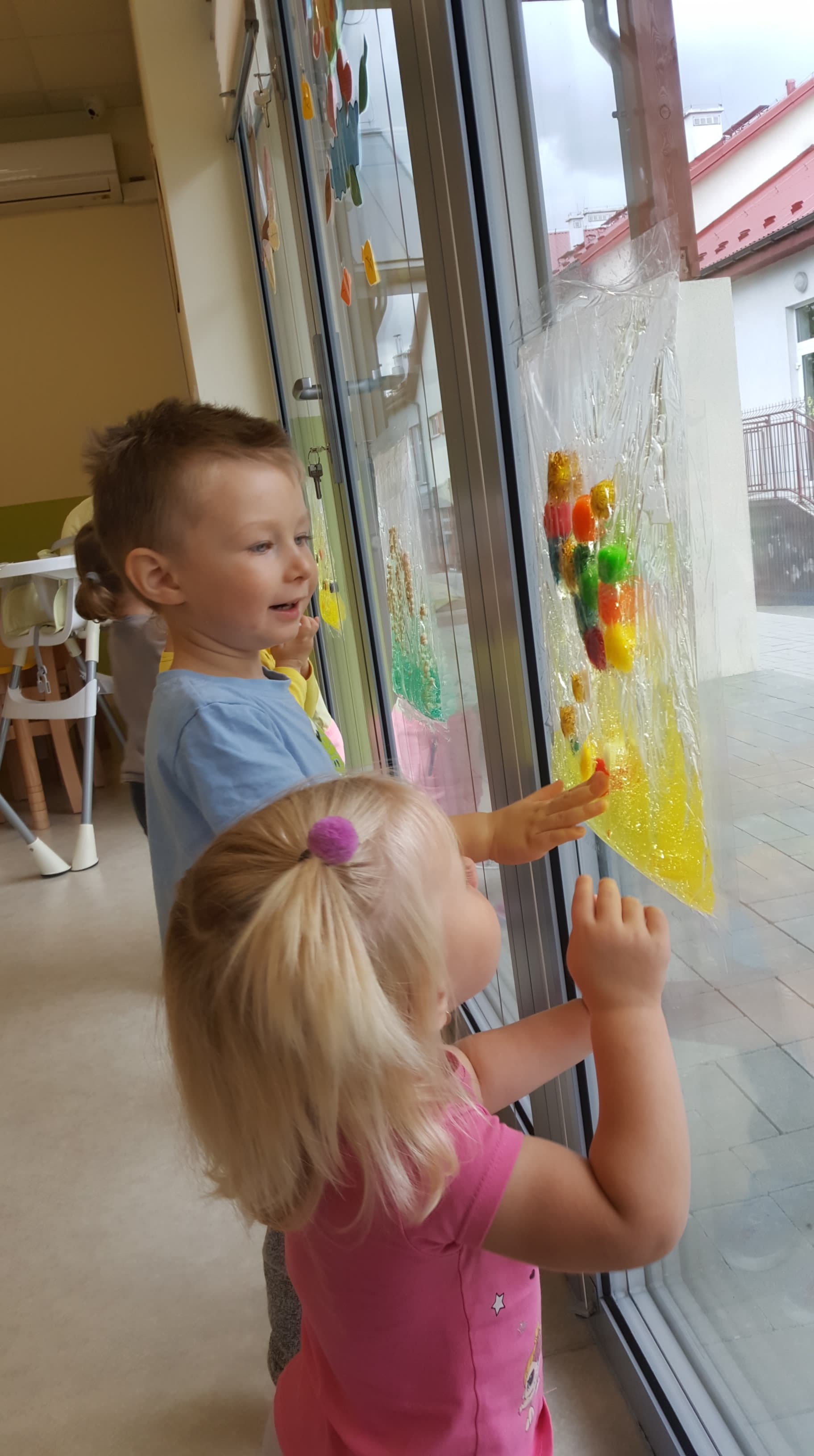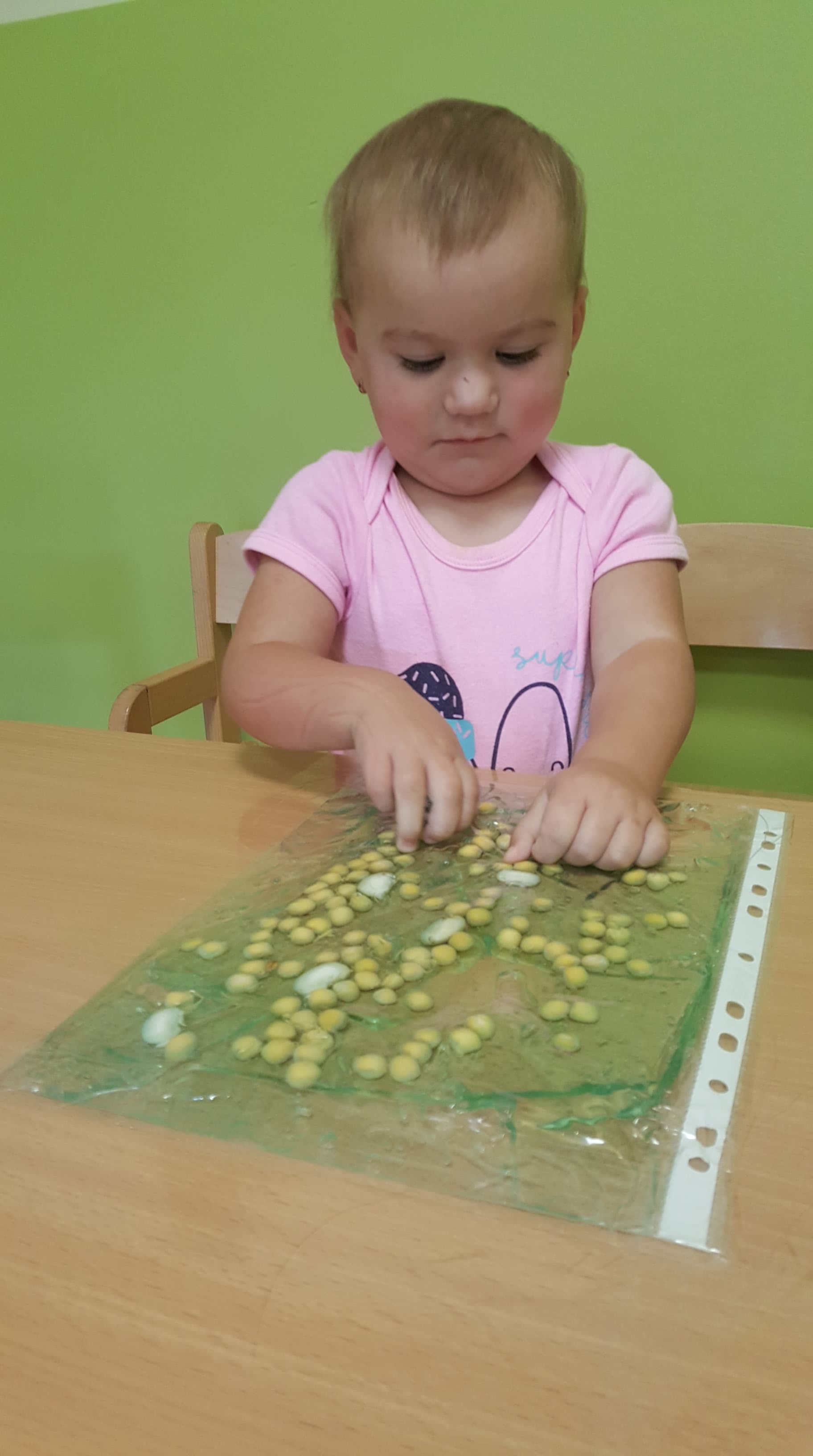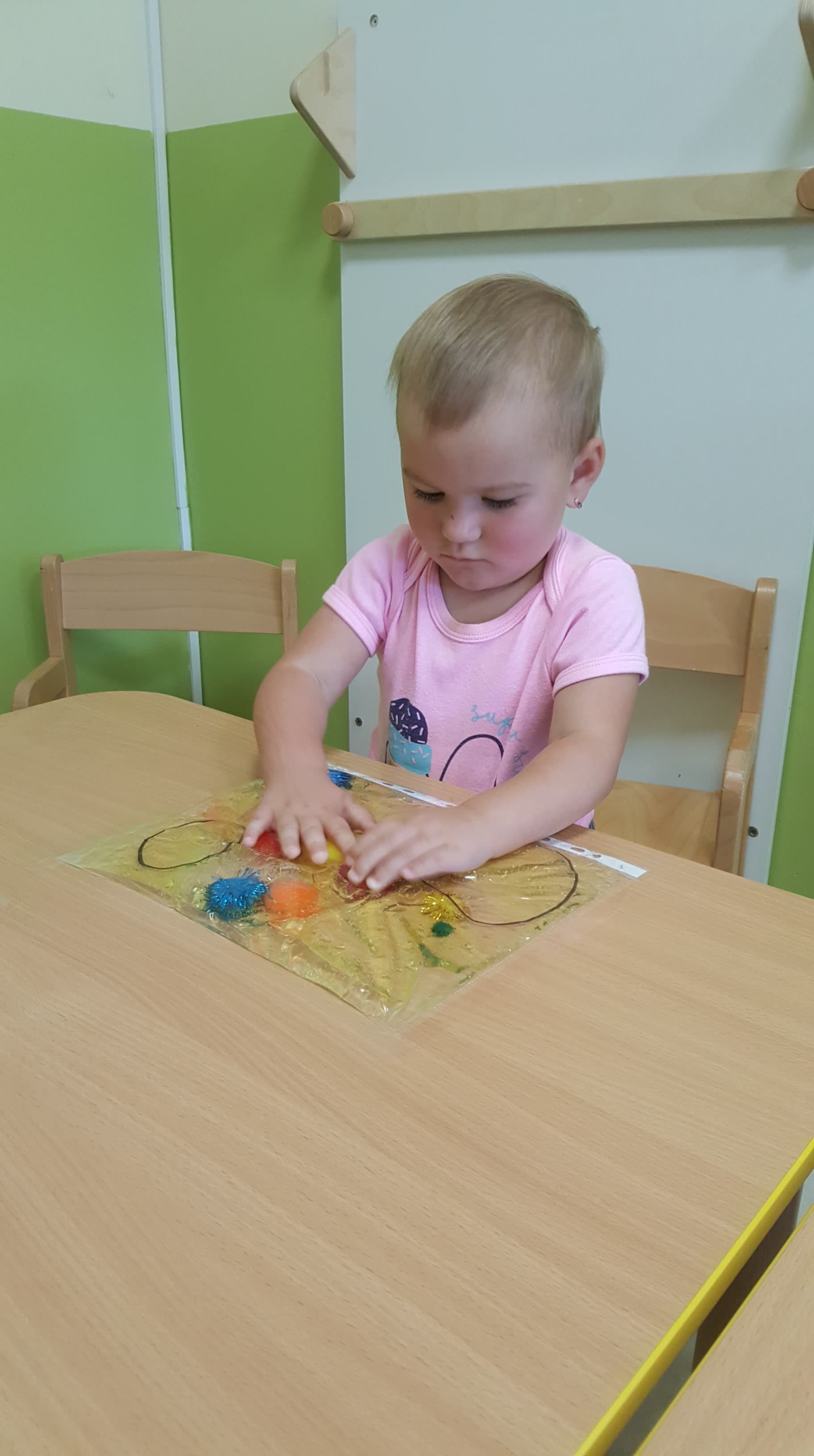 Wrzesień upływa nam na zabawach na placu zabaw, a w bardziej pochmurne dni bawimy się sensorycznie. Na początek w ruch poszły oczywiście farby, potem ciocie stworzyły worki sensoryczne, butelki sensoryczne, a zmysł smaku milusińscy kształtowali poprzez próbowanie różnych owoców. Było pysznie!