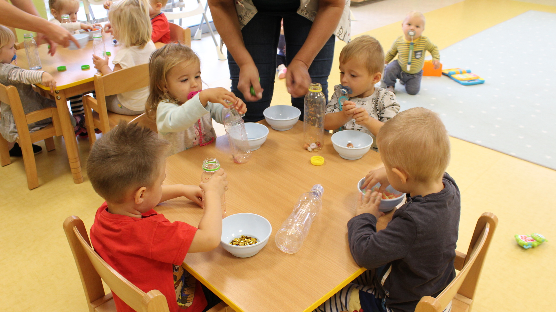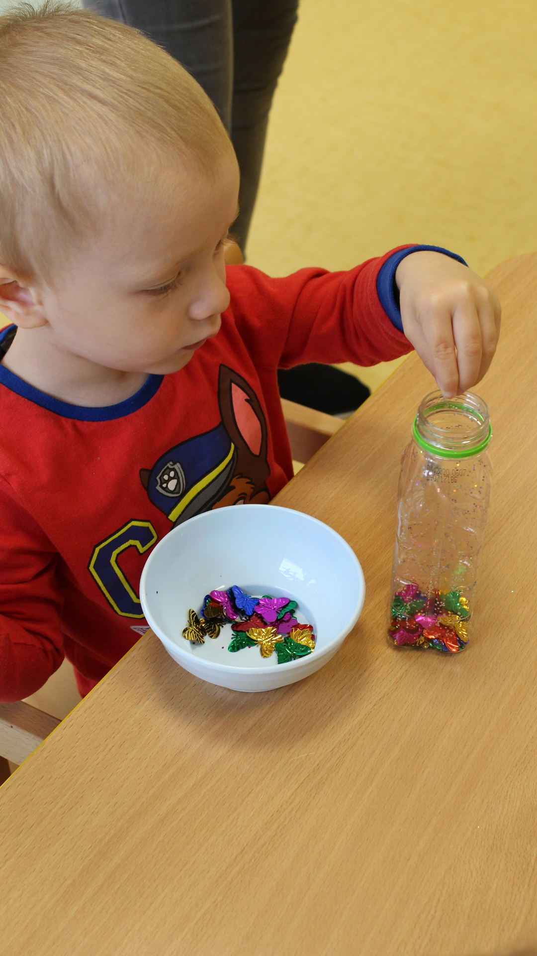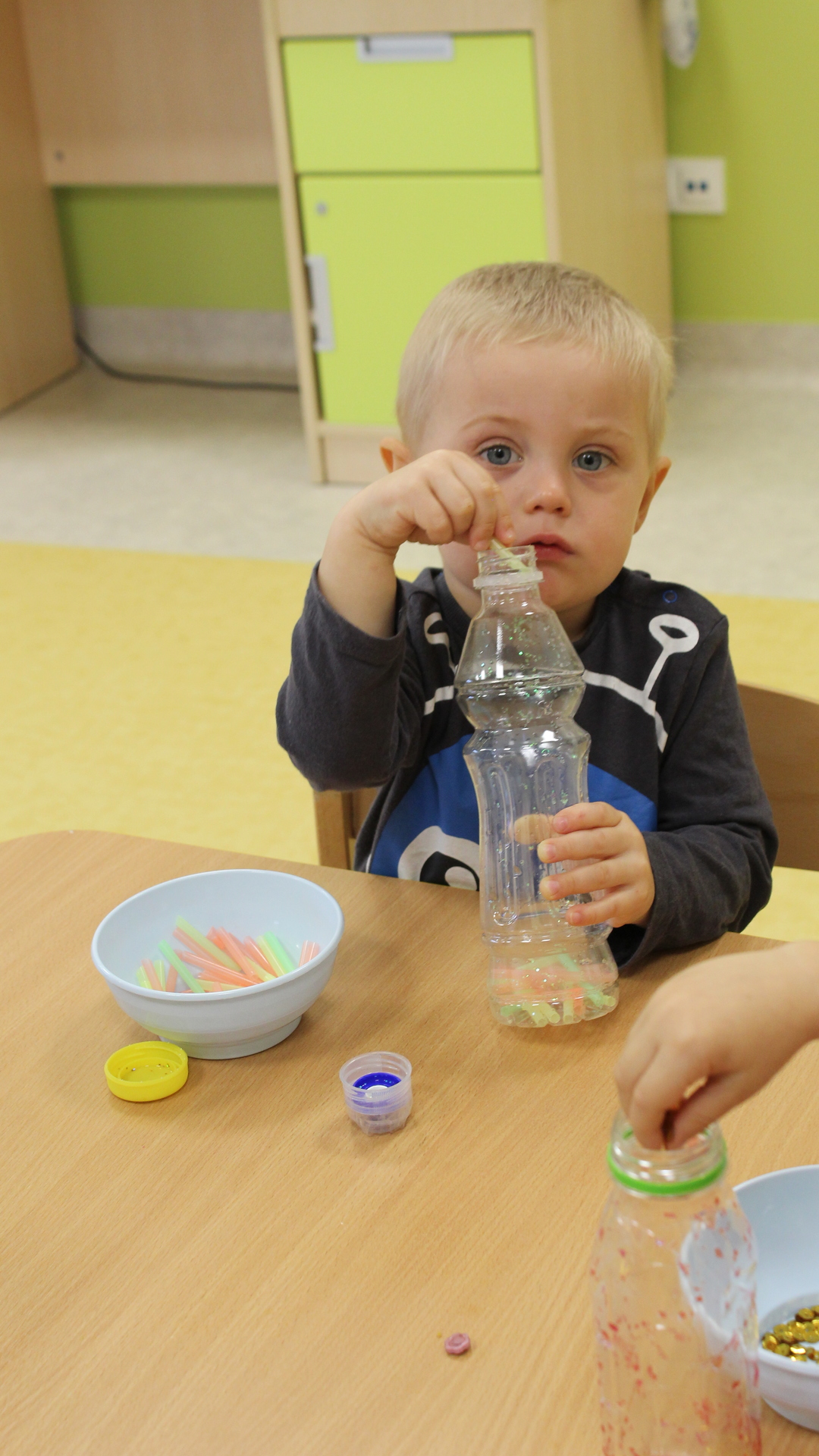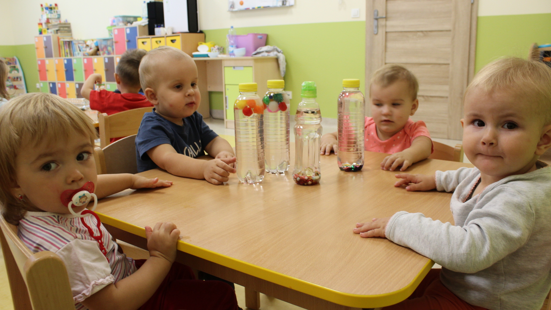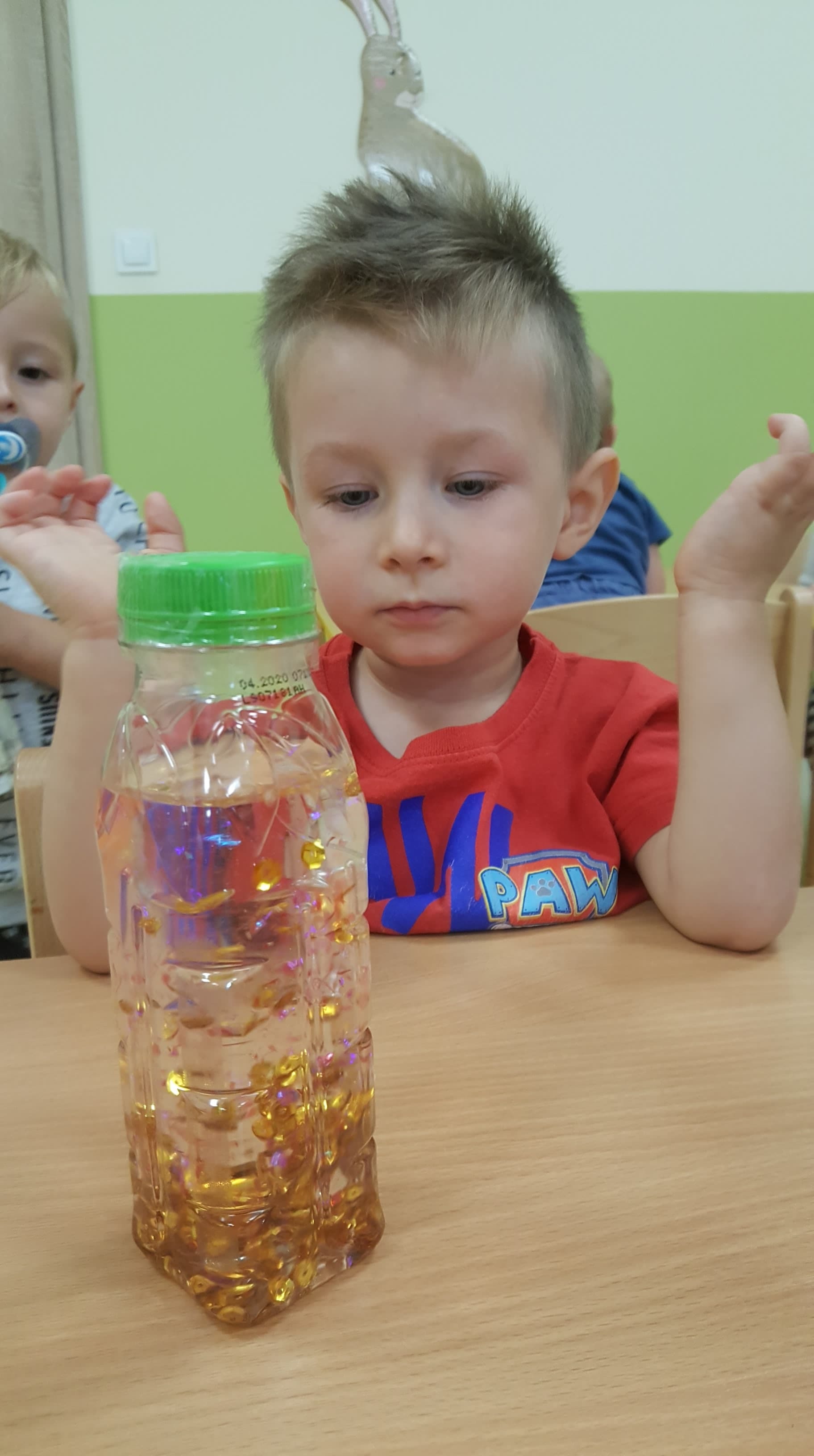 Wrzesień upływa nam na zabawach na placu zabaw, a w bardziej pochmurne dni bawimy się sensorycznie. Na początek w ruch poszły oczywiście farby, potem ciocie stworzyły worki sensoryczne, butelki sensoryczne, a zmysł smaku milusińscy kształtowali poprzez próbowanie różnych owoców. Było pysznie!